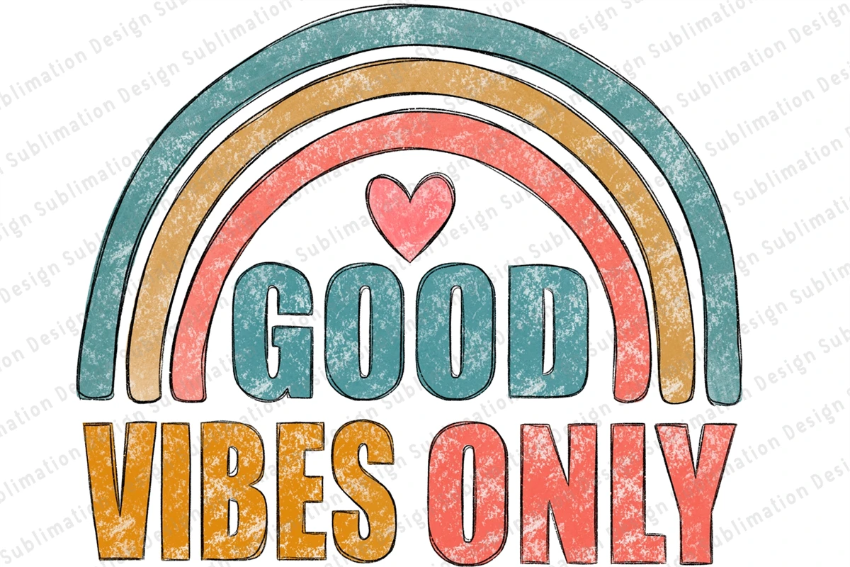 Good Vibes Only Rainbow Retro Sublimation Design Digital