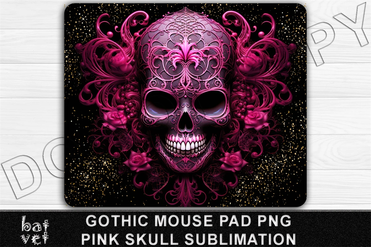 Gothic Mouse Pad Design / Pink Skull Mousepad Sublimation