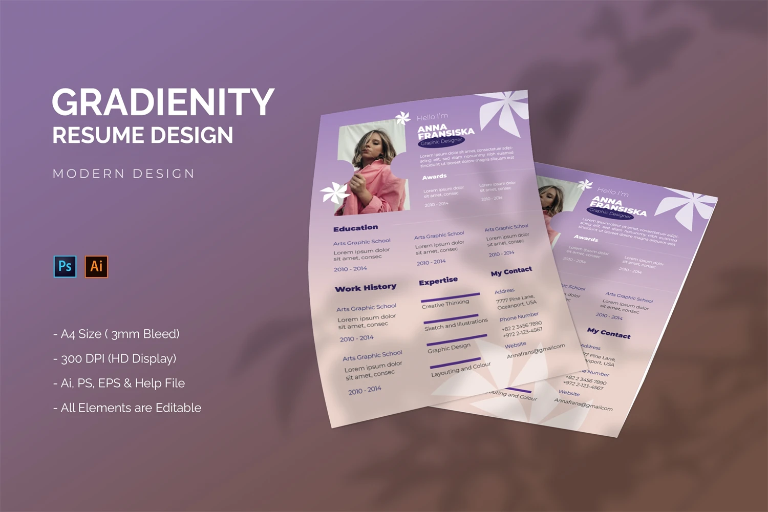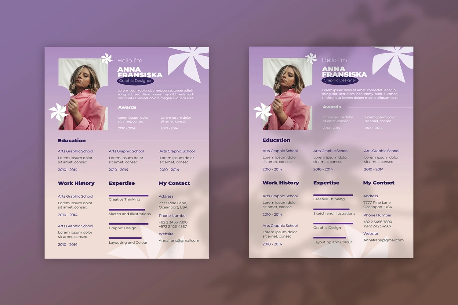 This CV resume design template lets you tell your story to potential employers or collaborators by showcasing your skills, experience, and accomplishments. It presents your credentials clearly and professionally to draw attention and highlight your strengths.