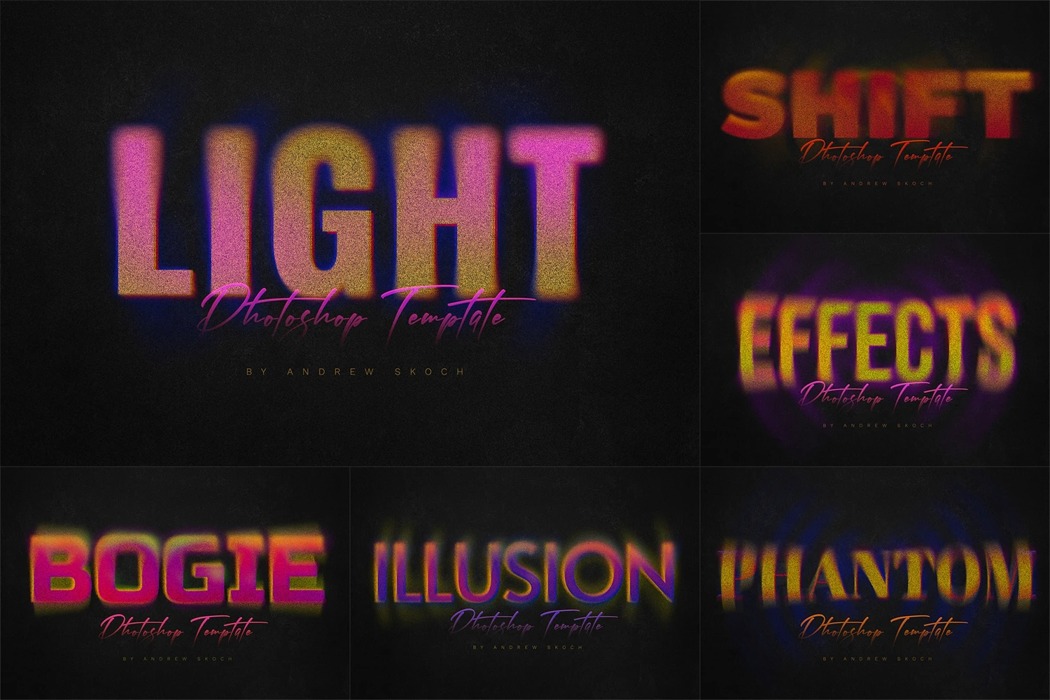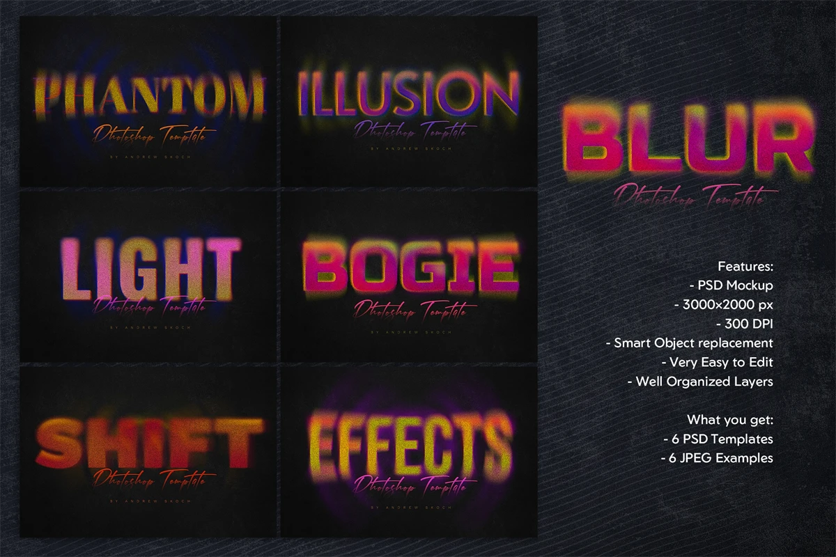 You can use these 6 Photoshop templates for making cool lettering for posters, social media, video titles, Instagram and Facebook, promo, ads and more!