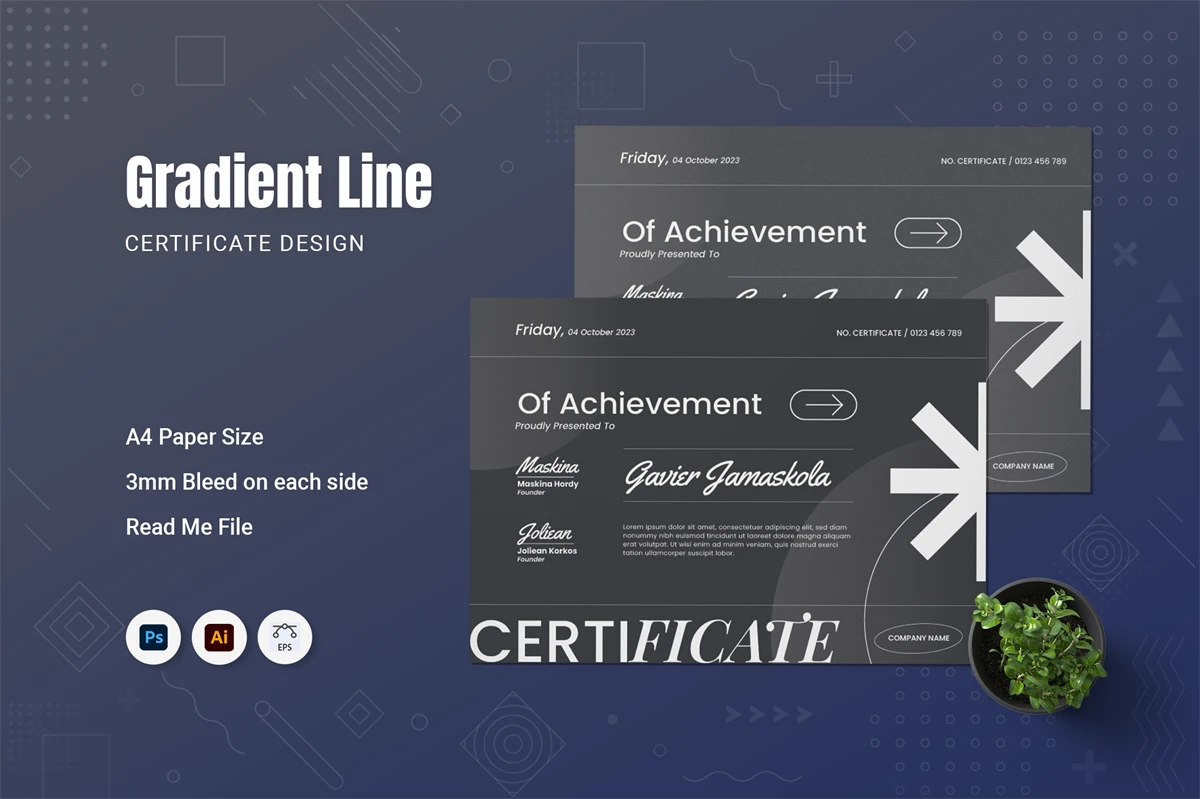 Make a lasting impression with this certificate template. We paint the feeling of achievement, so you can look back on milestones and victories and give thanks for your efforts.