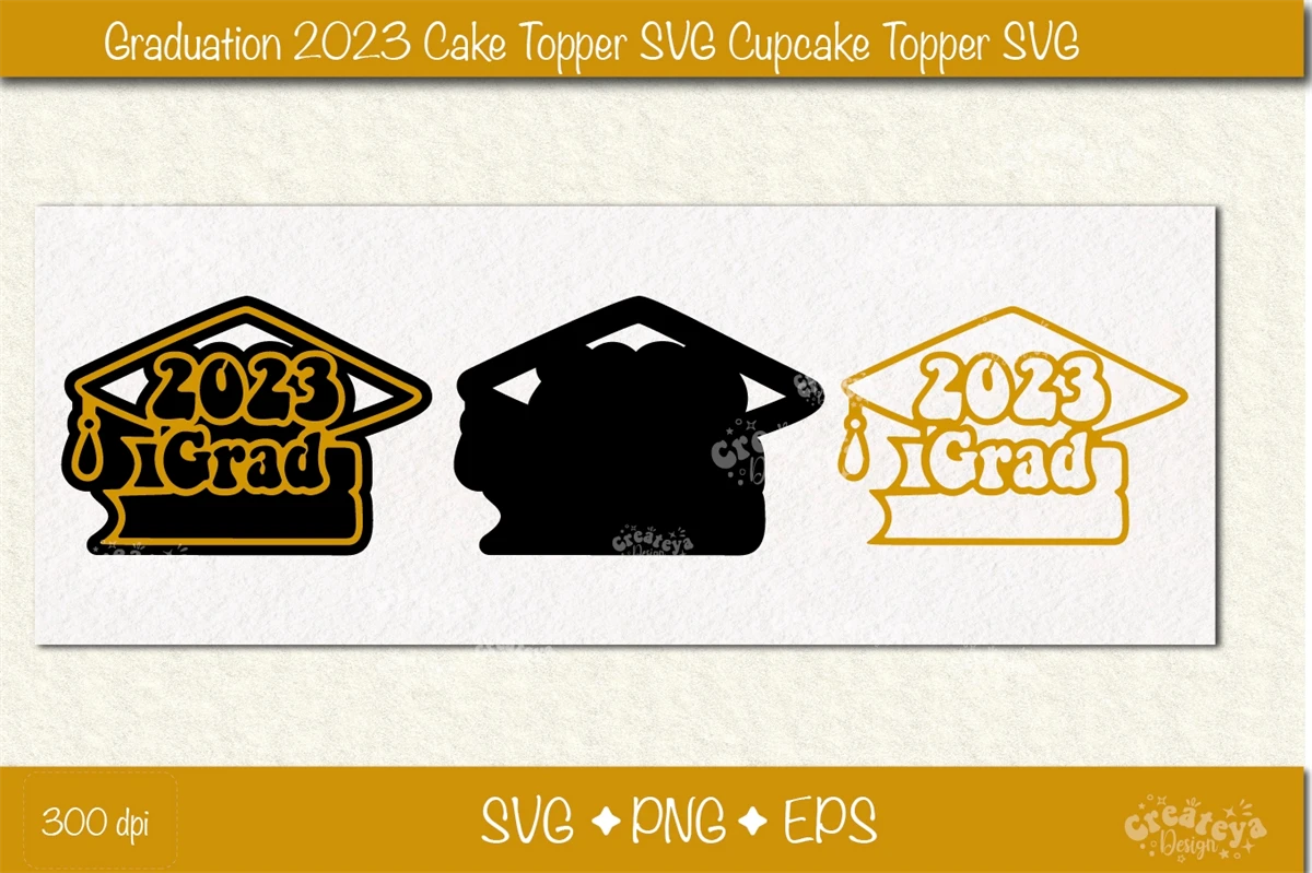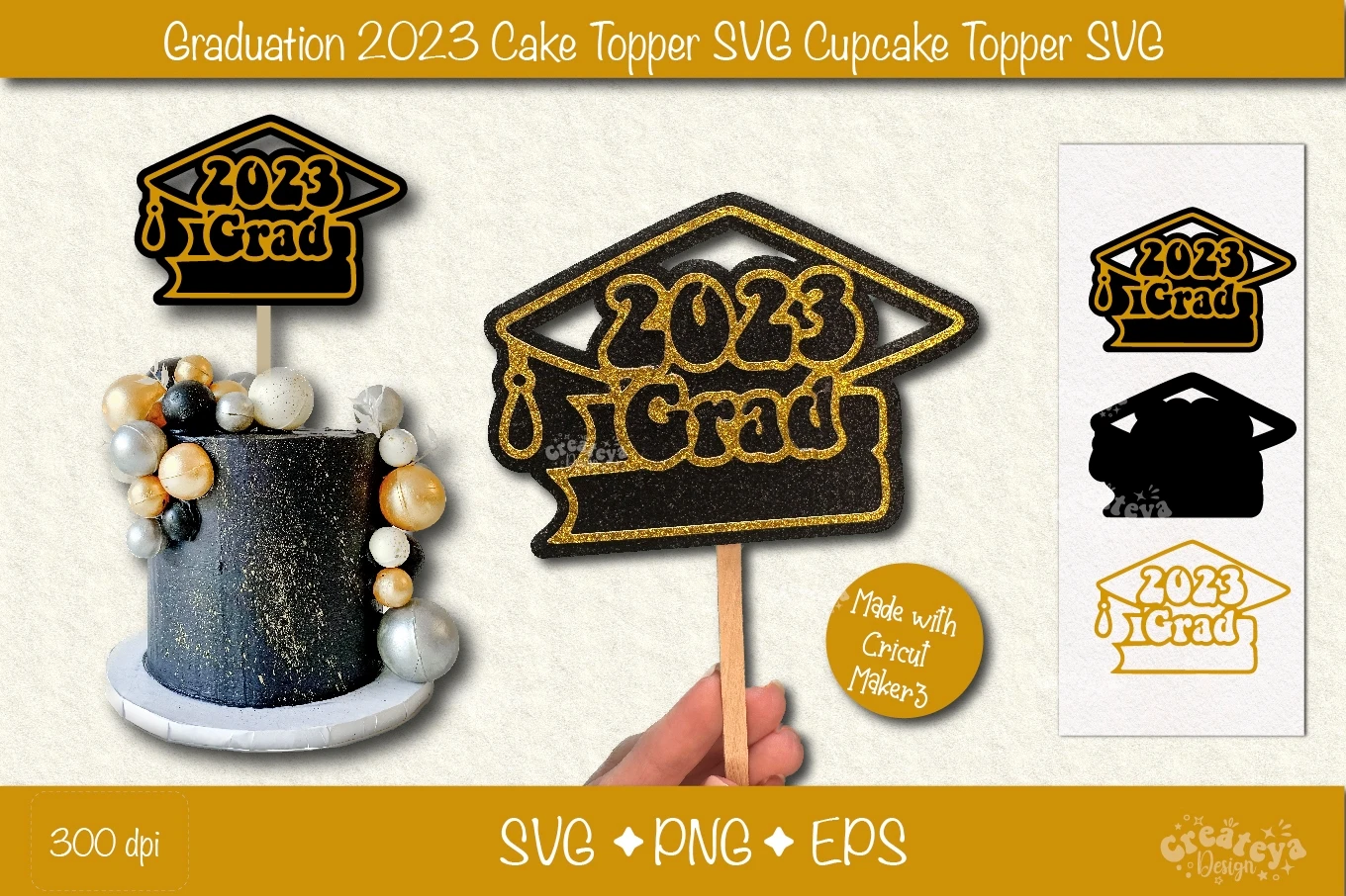 Graduation Cake Topper SVG design. Graduation Cupcake topper Grad 2023 cake topper. Use these with cake toppers or bamboo sticks.
