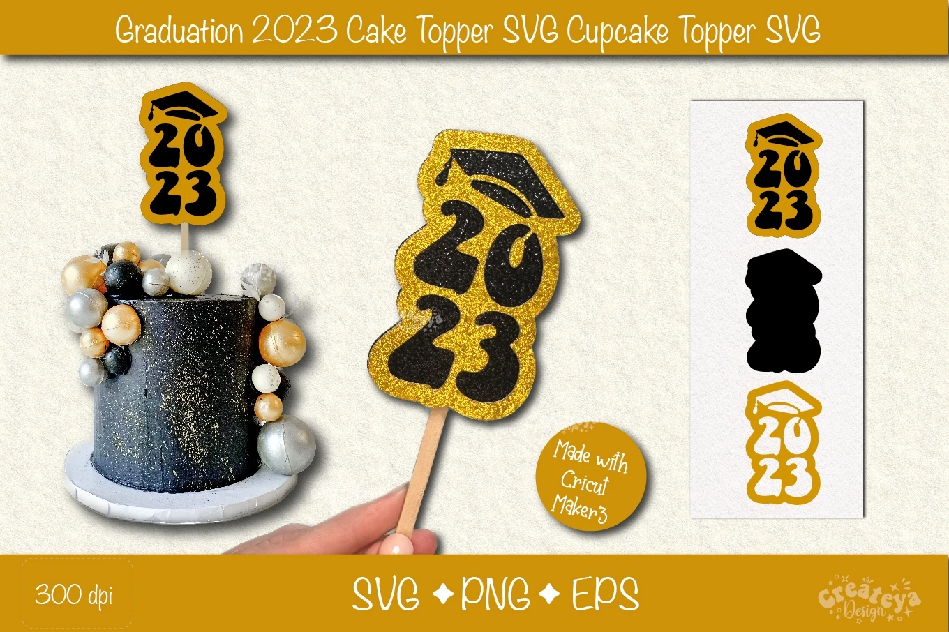 Graduation Cake Topper SVG design. Graduation Cupcake topper 2023 cake topper. Use these with cake toppers or bamboo sticks.