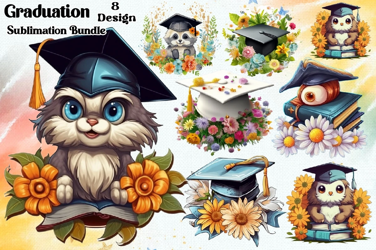 Watercolor Graduation Clipart PNG Bundle