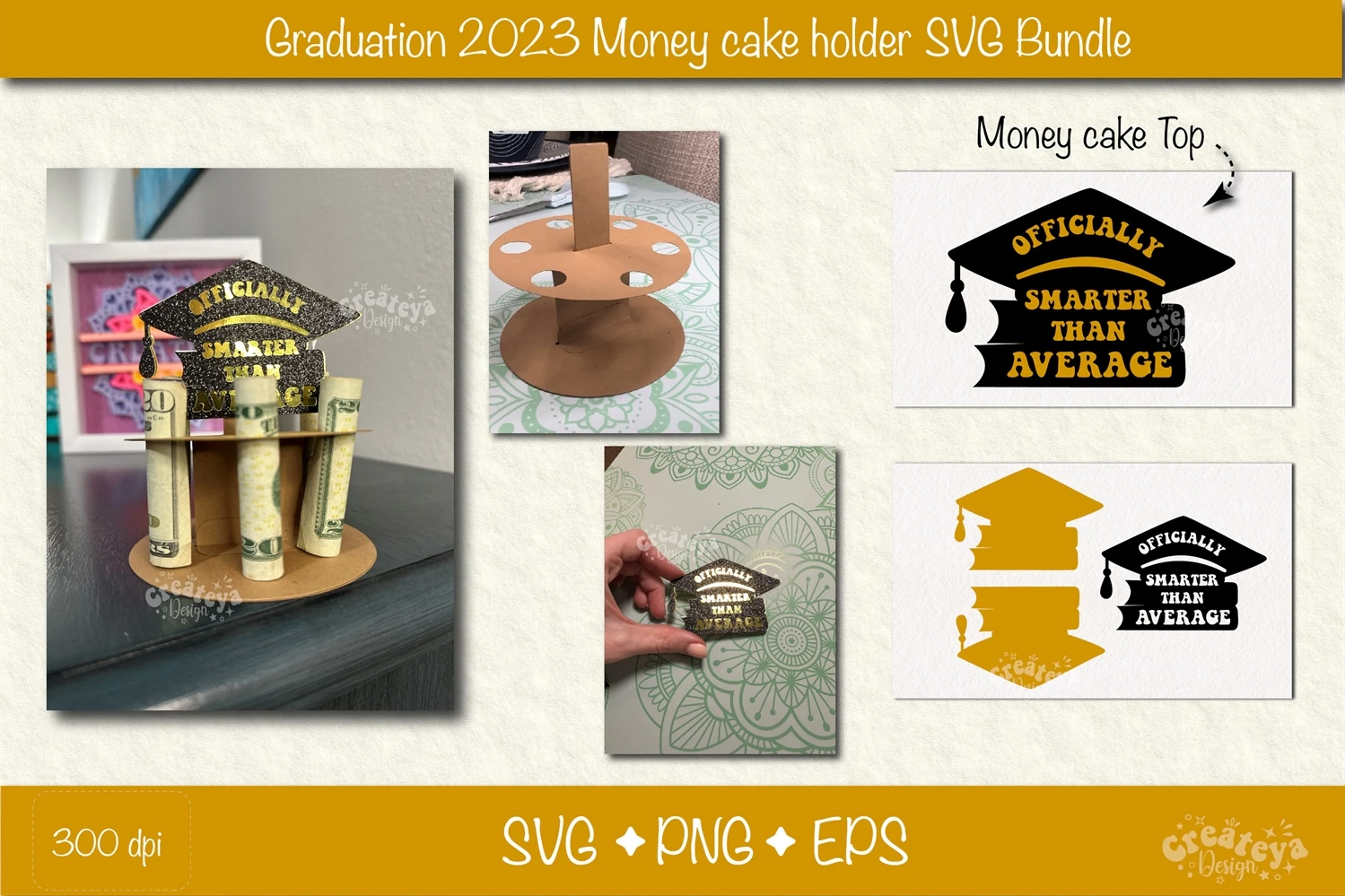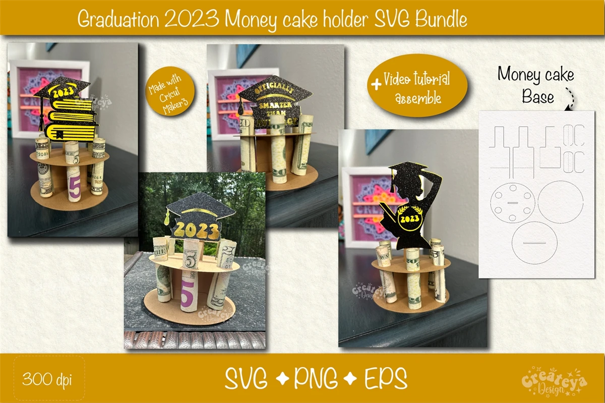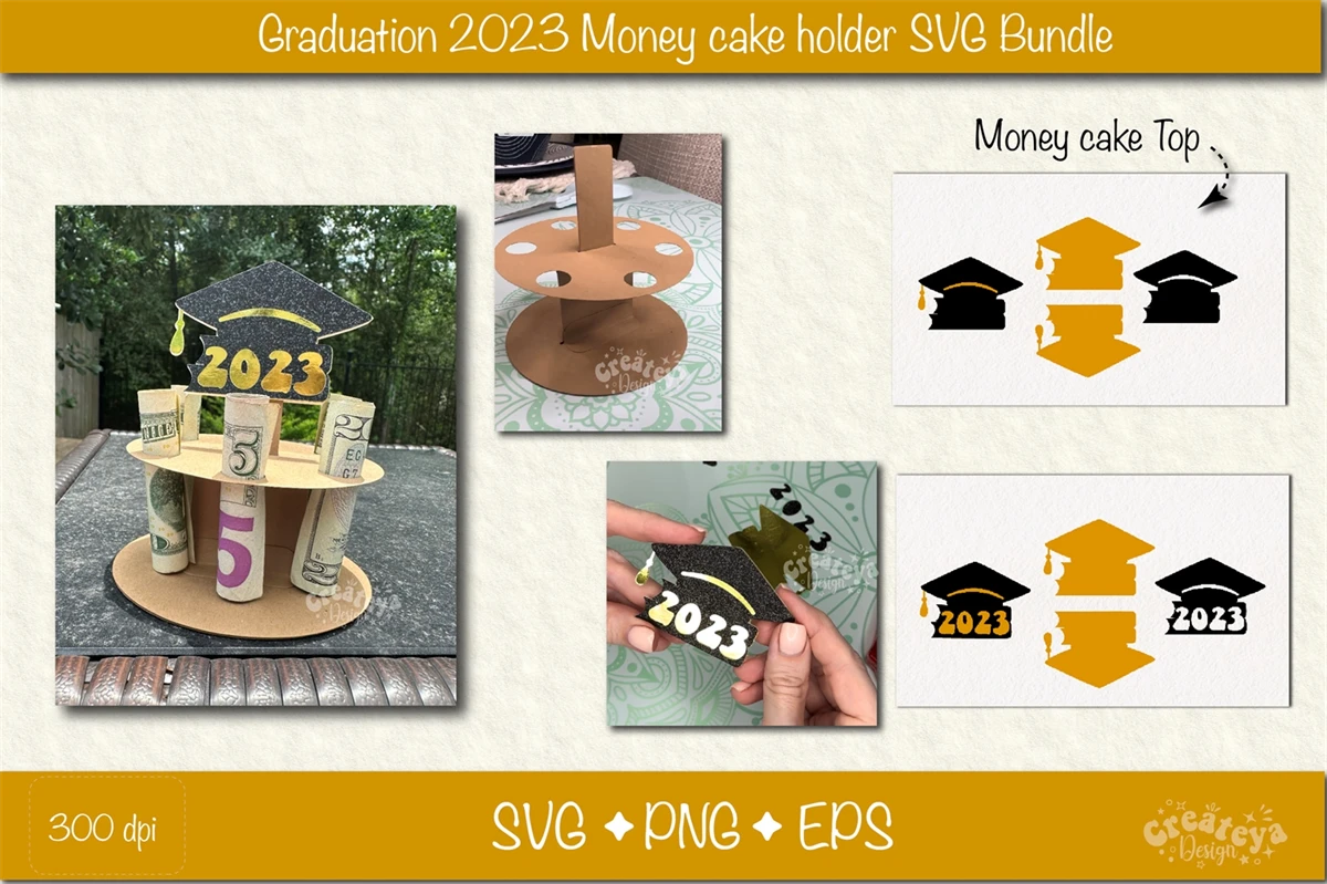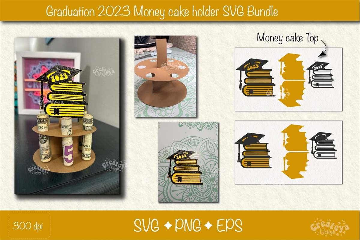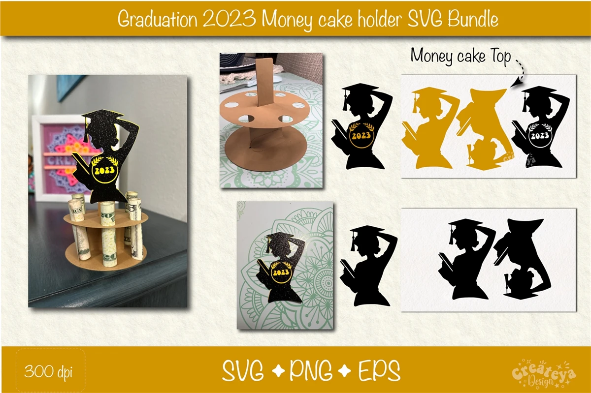 Graduation money cake SVG Bundle Cardstock money cake template for Graduation 2023. Money holder SVG Bundle with 7 Graduation Toppers with 2023 and without. Paper cutting. SVG template cut file for Cricut or other cutting machines.