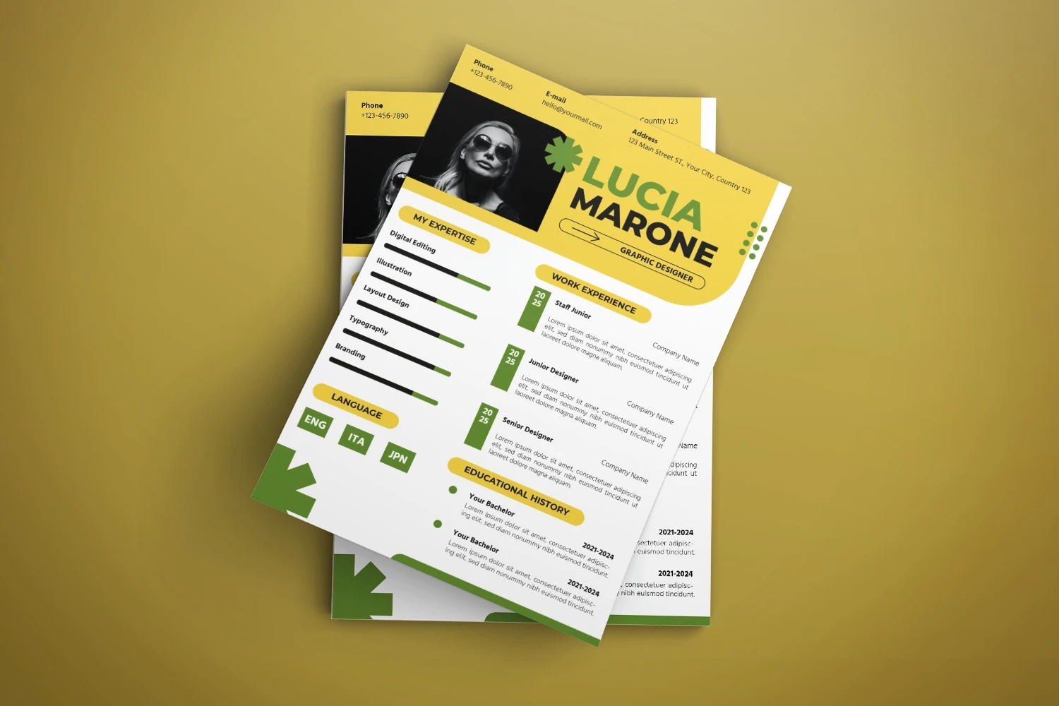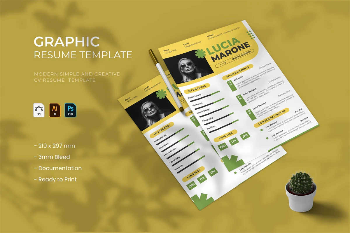 creative resume and cover letter template that will make your resume stand out from the hundreds of resumes employers get. It gives you the information you need, such as your name, contact information, social media links, education, experience, skills and interests. Also, it comes with three different color schemes.