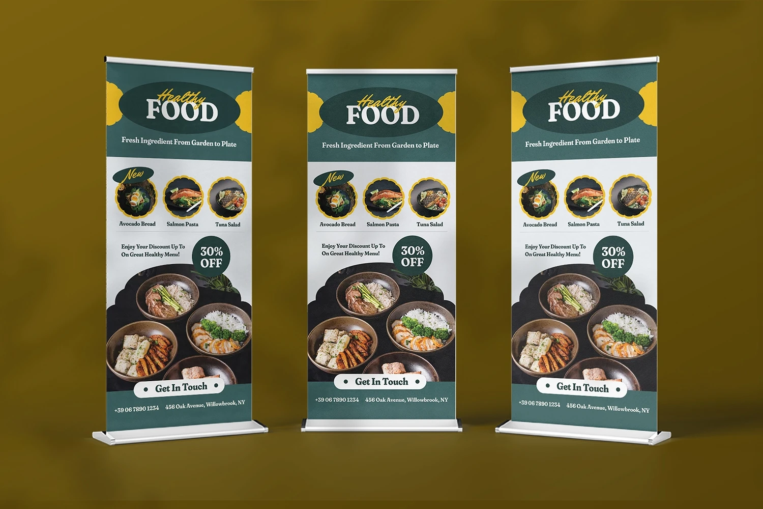 This is **Greahealth - Roll Up Banner** Don't wait, get it right now! , All Your Roll-Up Banner Needs, Professional or Personal. This stylish and adaptable template is perfect for your company's promotional materials.