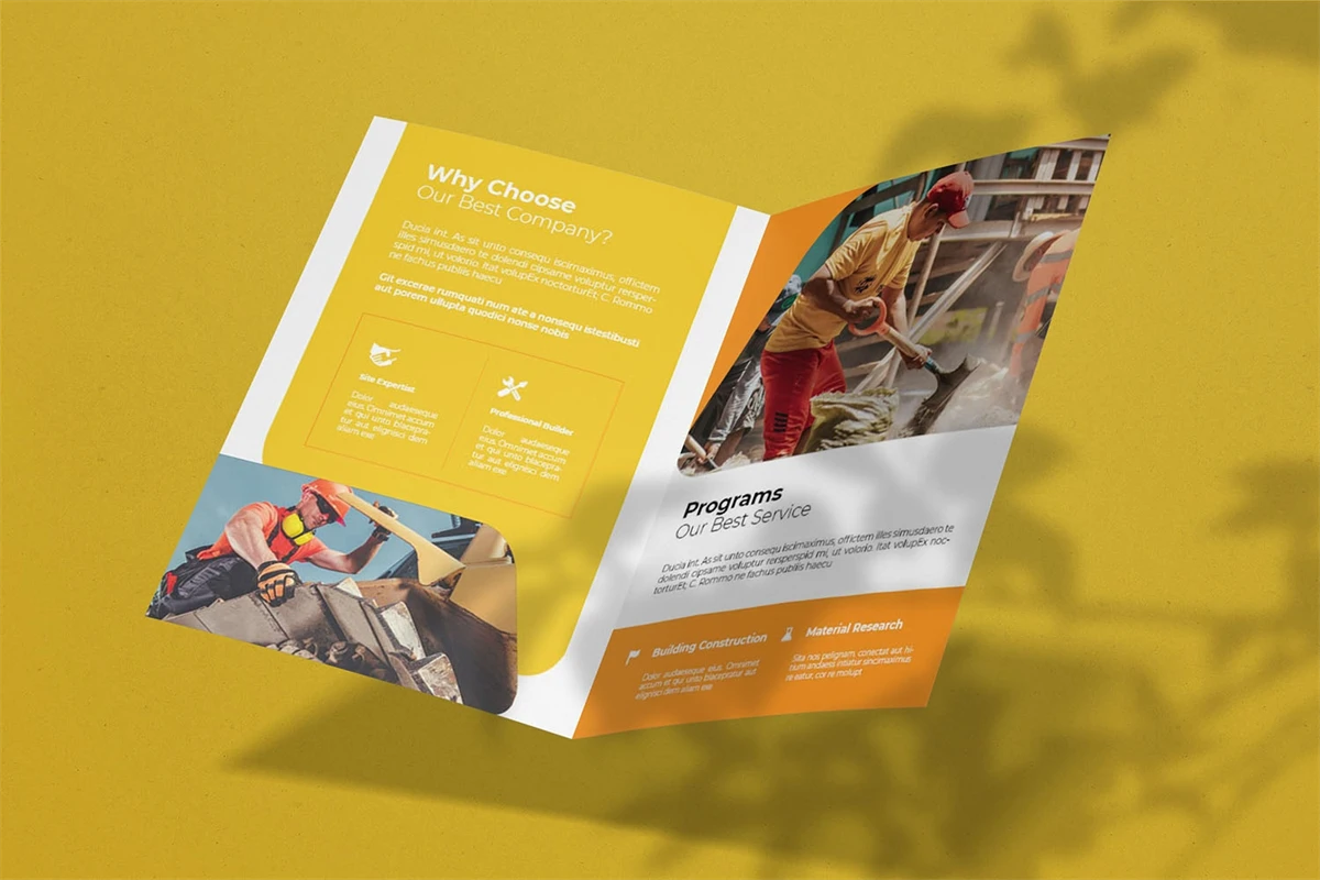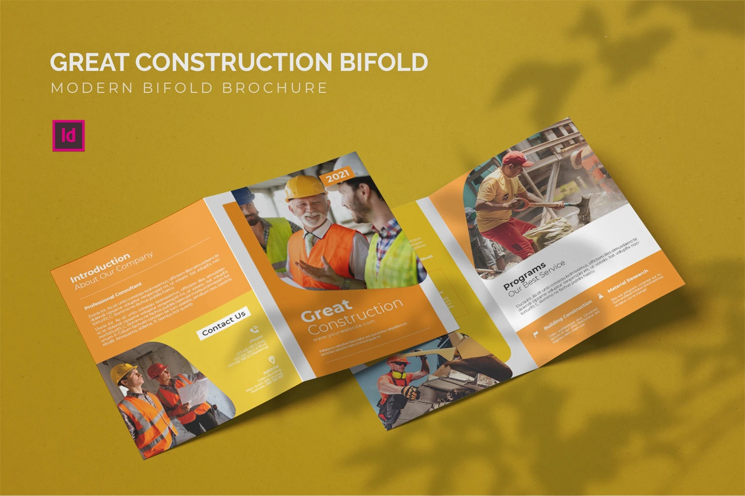 Great Construction - Bifold Brochure We present this Bifold Brochure for you, simple and very elegant, and this Bifold Brochure is suitable for all types of your business, made with adobe inDesign, very easy to customize, Hope you Like it, dont forget to rate, Thanks.