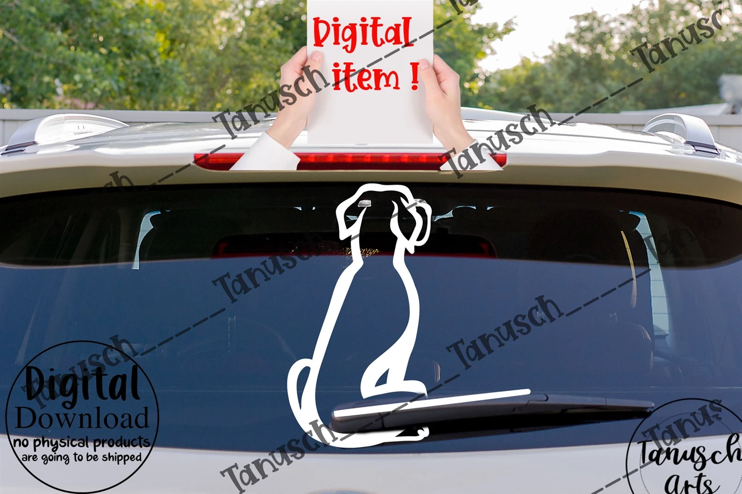 Great Dane Car Window Decal Wagging Tail Dog Graphic Graphic absolutely cool digital dog sticker for your car.