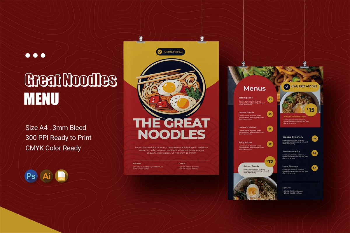 This Menu is great for displaying your restaurant menu in an eye pleasing way. Attracting customers with an easy-to-read restaurant menu certainly makes closing easier, right? easily editable according to your needs, this restaurant menu is perfect for promos, cafes, hotels, resort shops online etc.