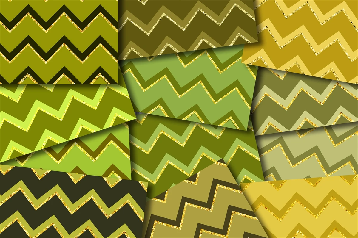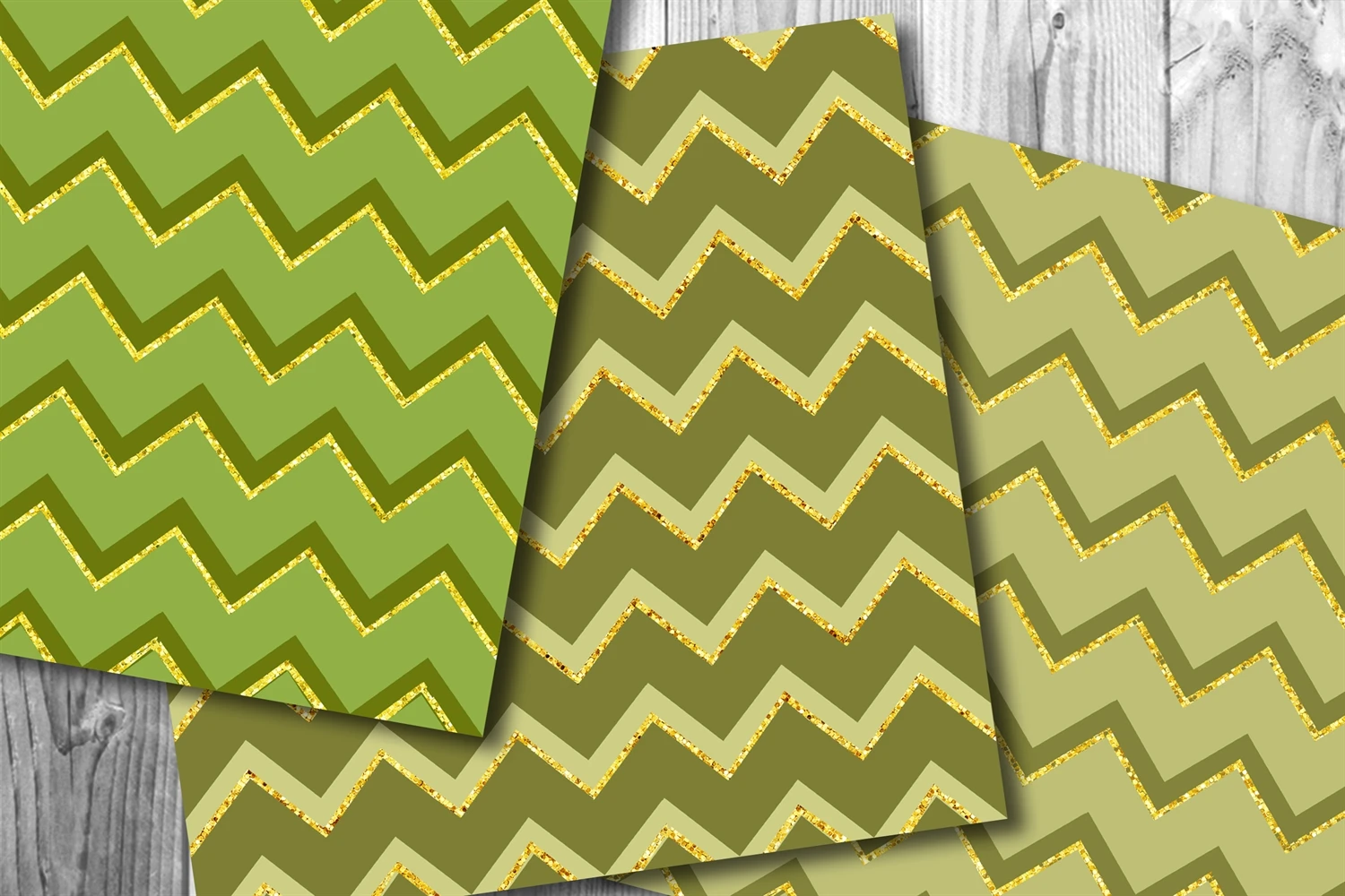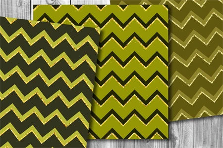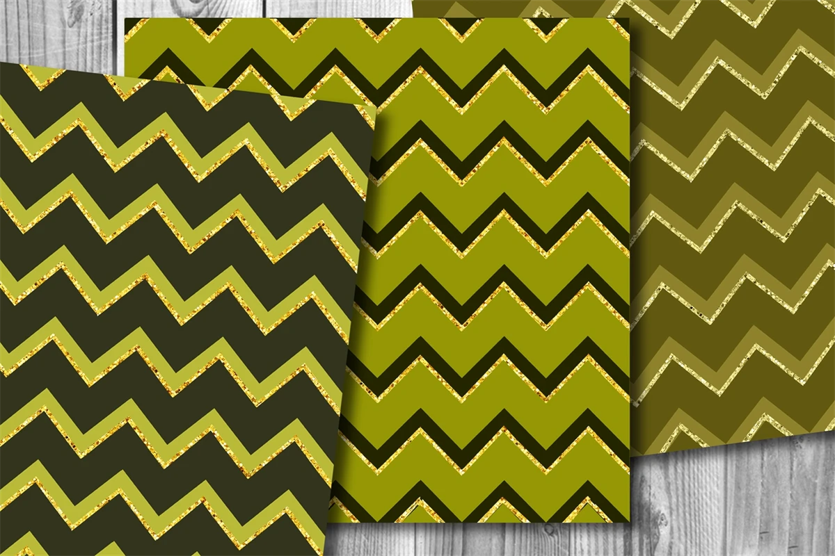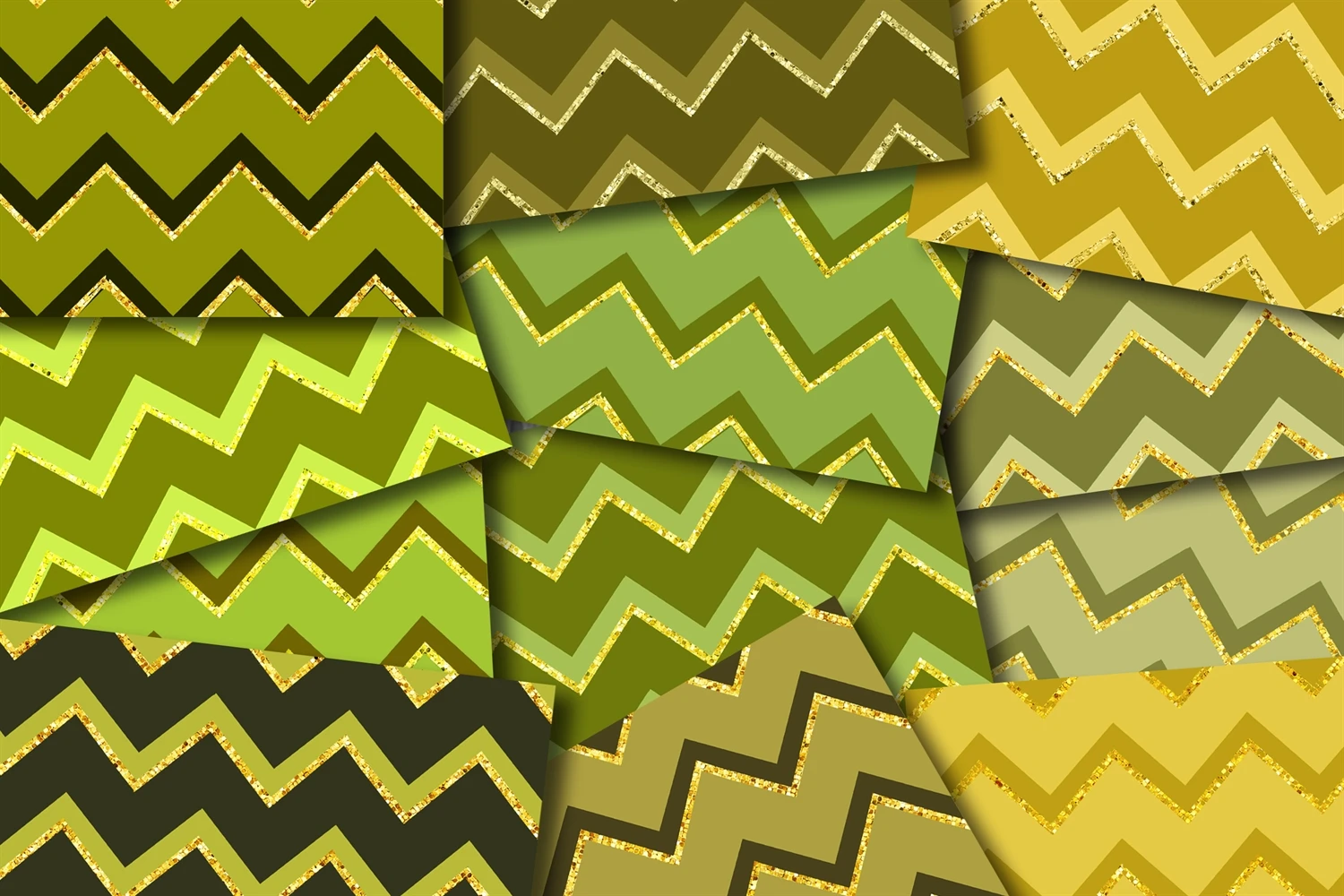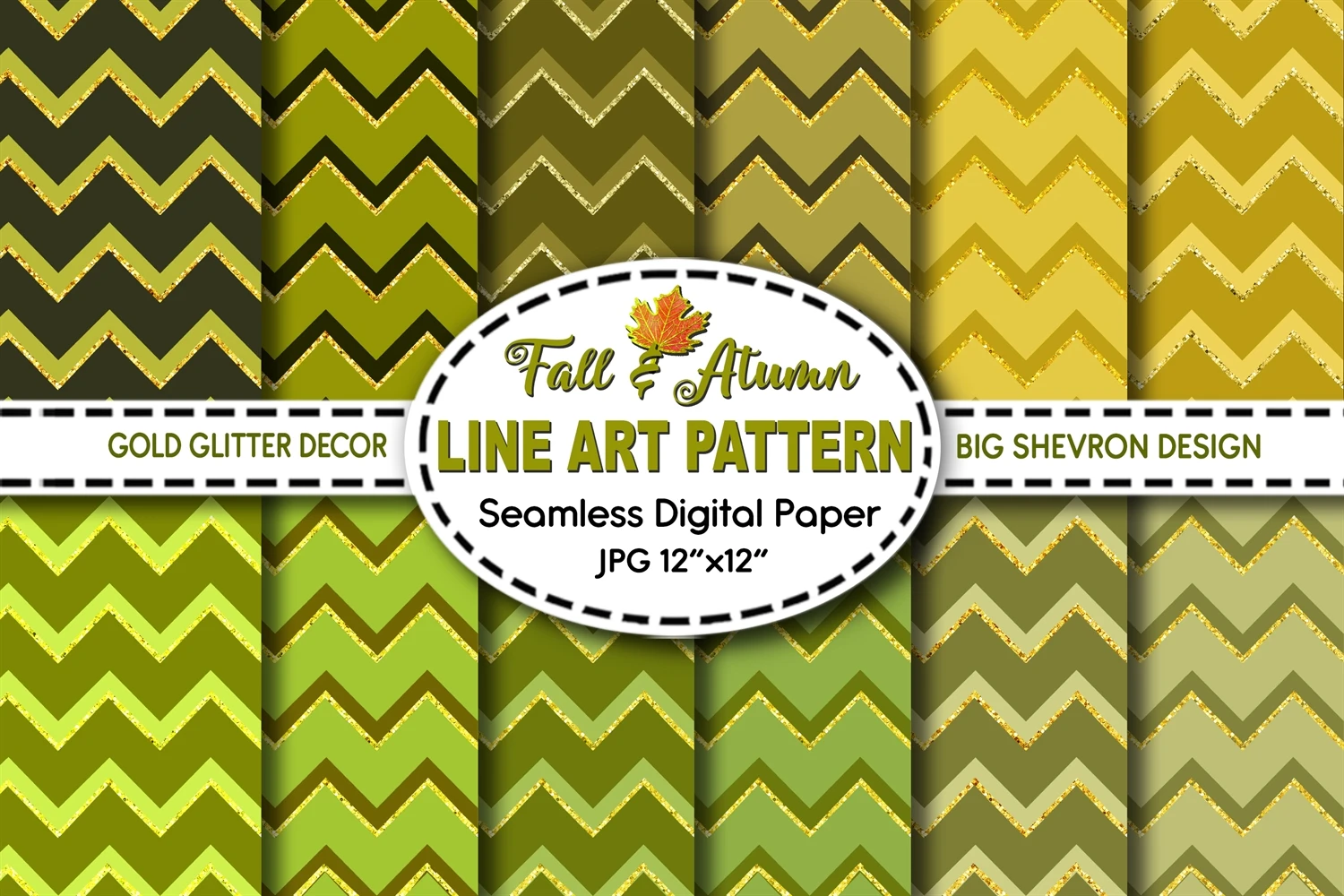 Green Tone Zigzag Chevron Line Art Pattern with Gold Glitter Decor Design Seamless Pattern Digital Paper in Fall and Autumn Theme colors for DIY Projects