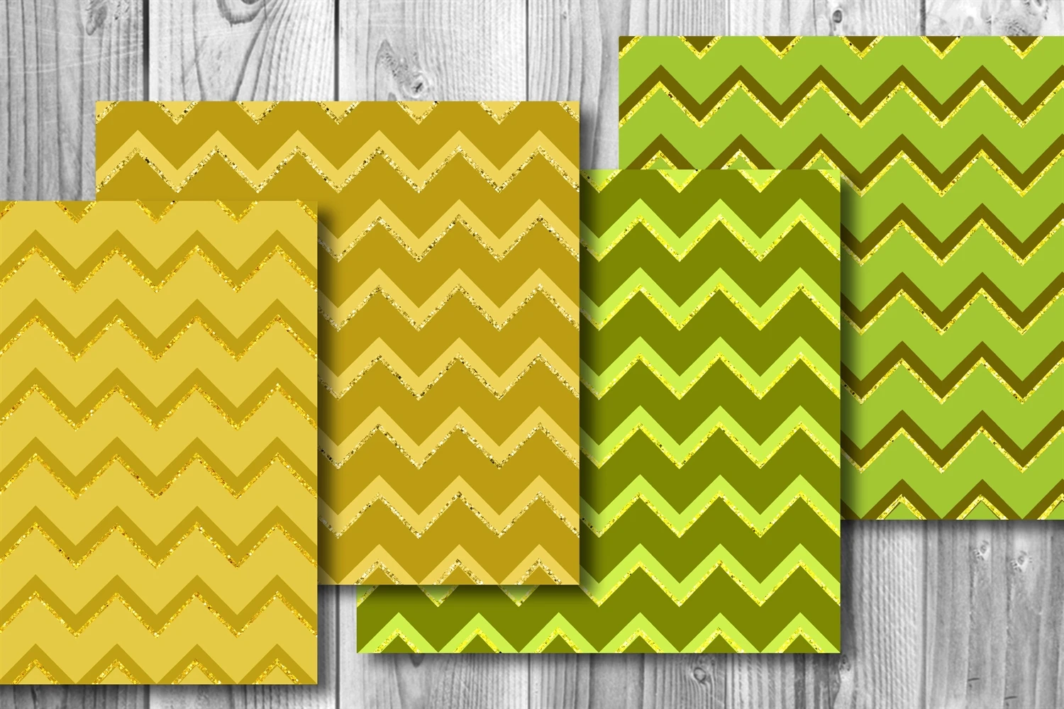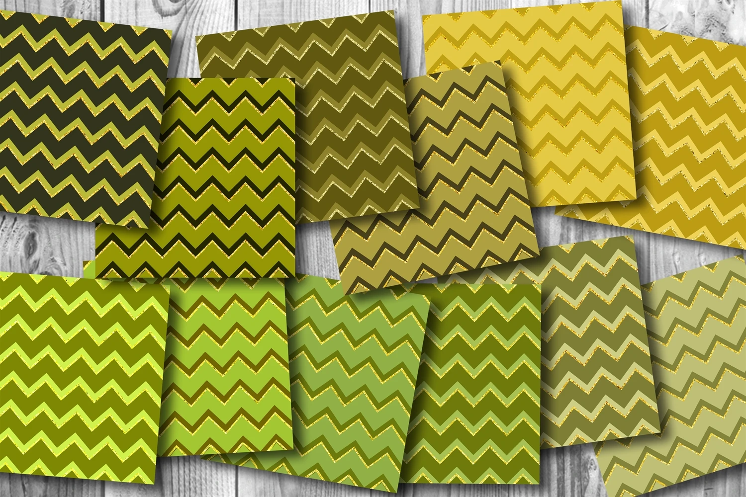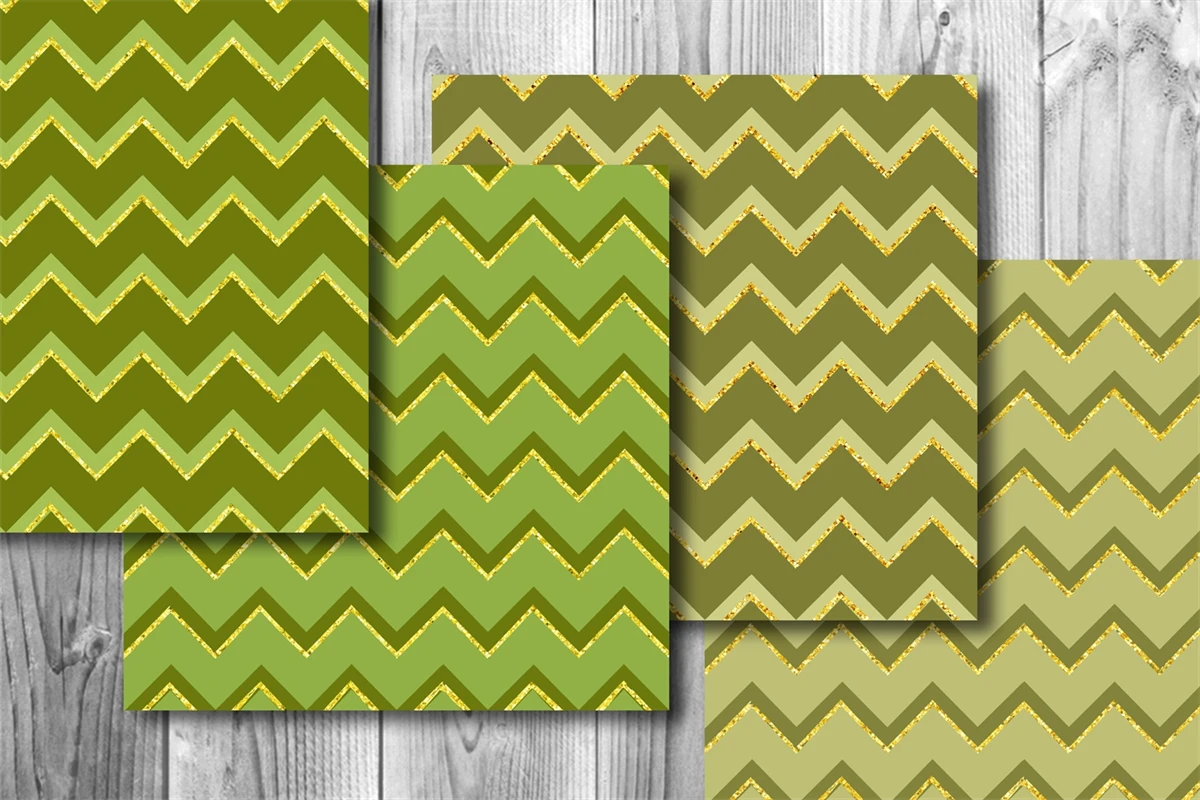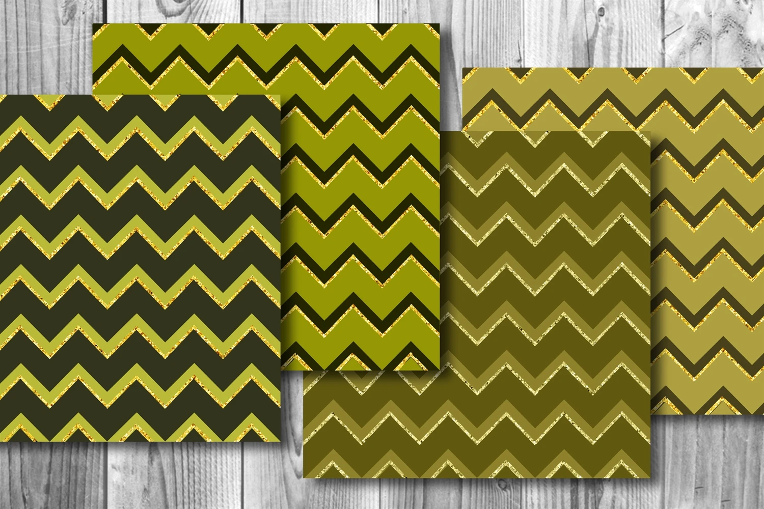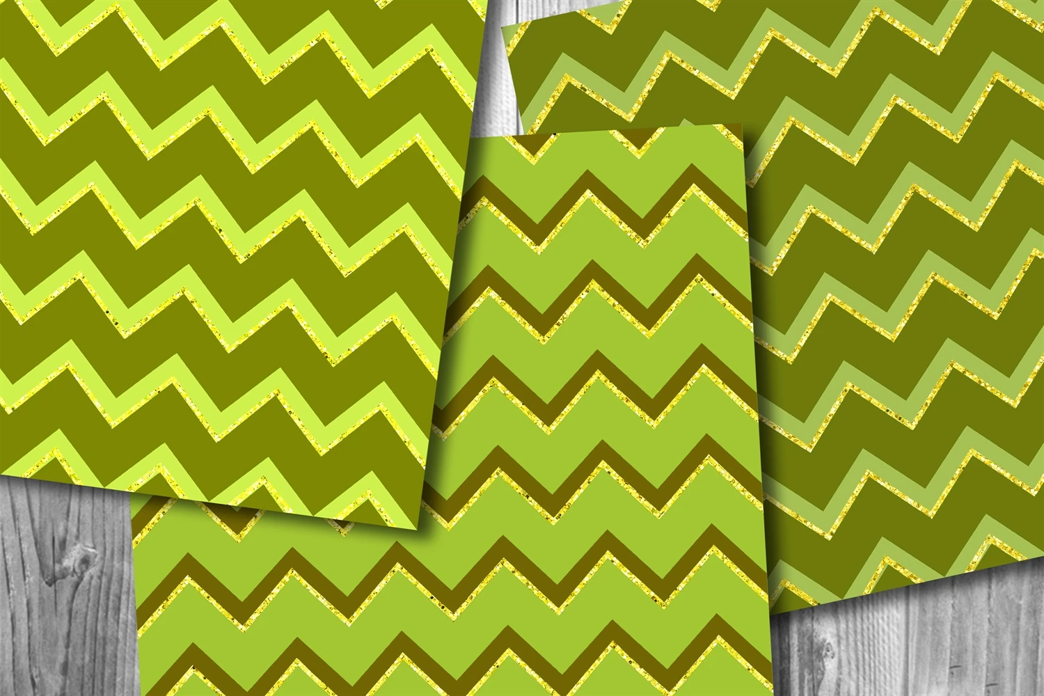 Green Tone Zigzag Chevron Line Art Pattern with Gold Glitter Decor Design Seamless Pattern Digital Paper in Fall and Autumn Theme colors for DIY Projects