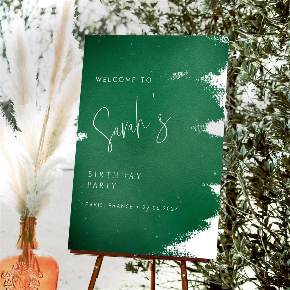 Green Birthday Welcome Sign Template, Emerald Green,Canva