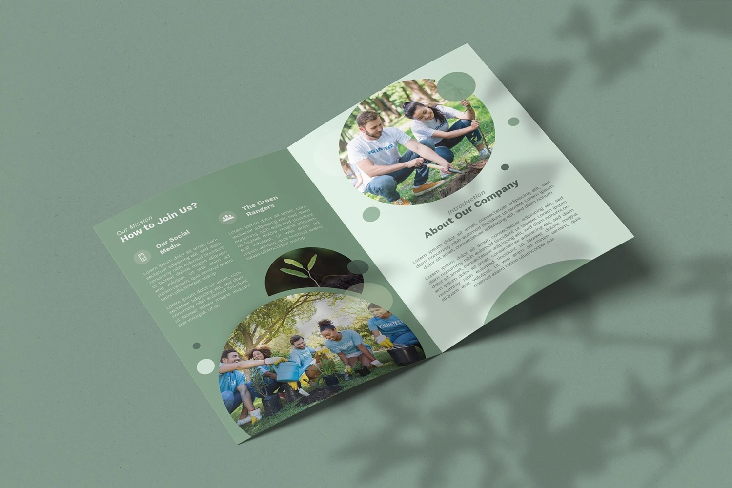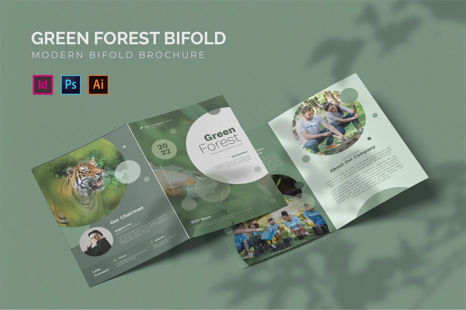Green Forest - Bifold Brochure We present this Bifold Brochure for you, simple and very elegant, and this Bifold Brochure is suitable for all types of your business, made with Adobe InDesign (INDD), Adobe Photoshop (PSD) and Adobe Illustrator (AI), very easy to customize, Hope you Like it, dont forget to rate, Thanks.