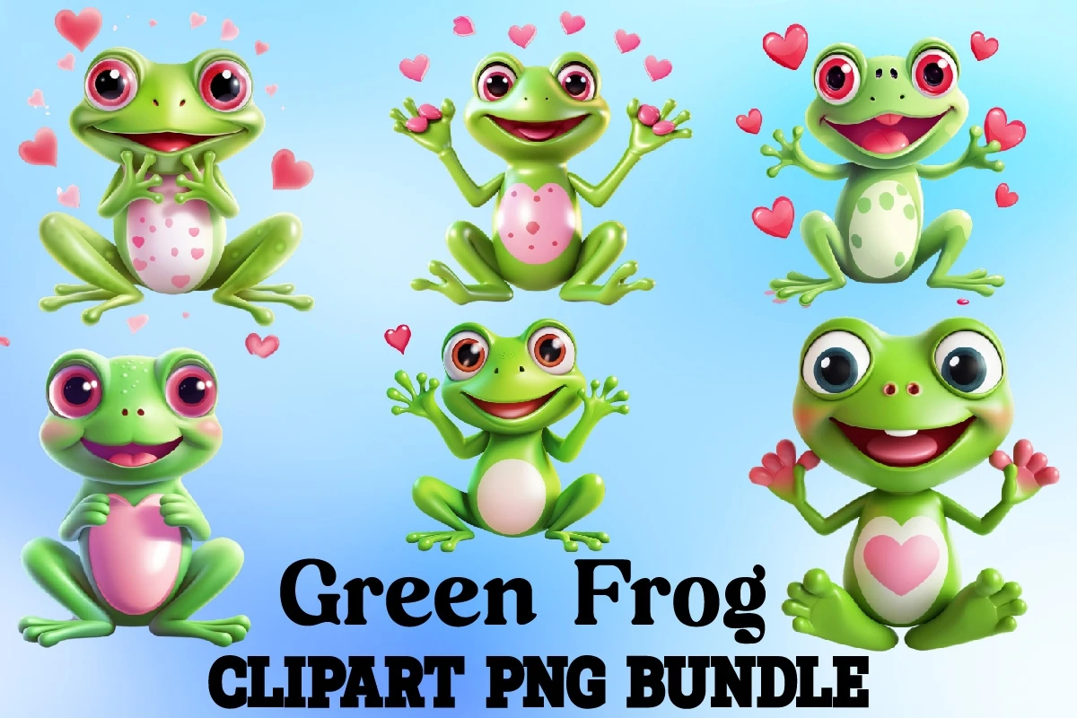 Green Frog Clipart Bundle