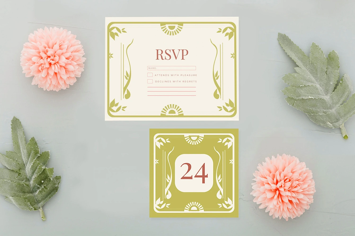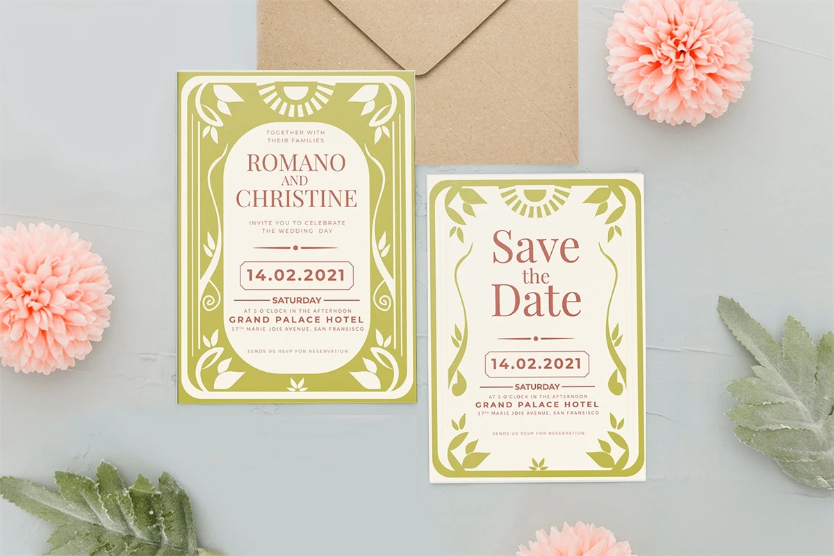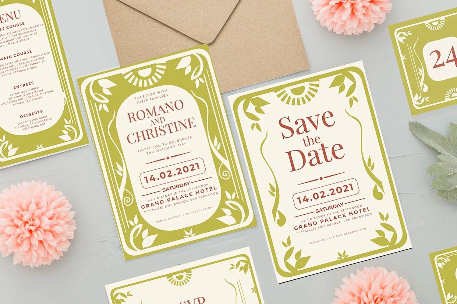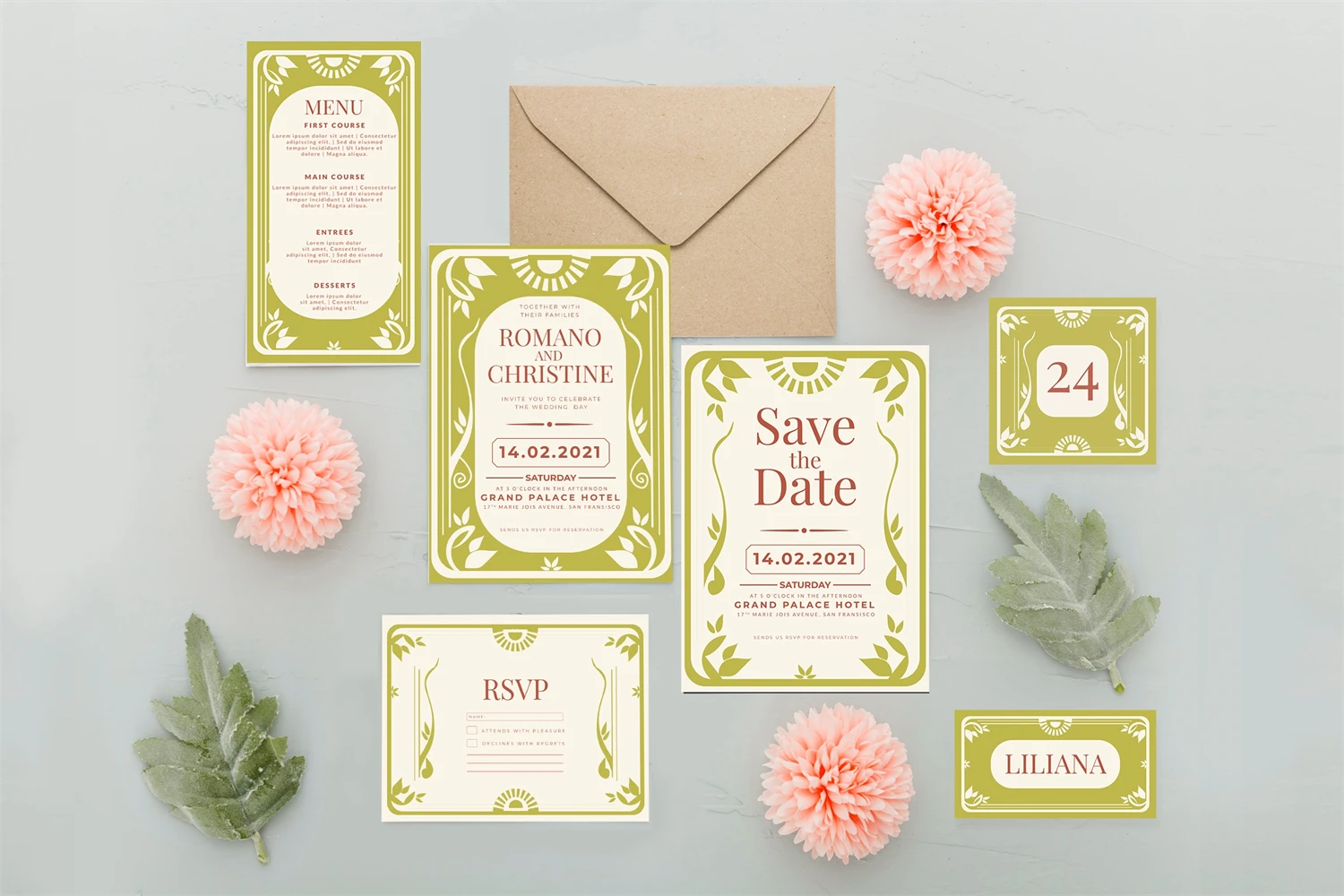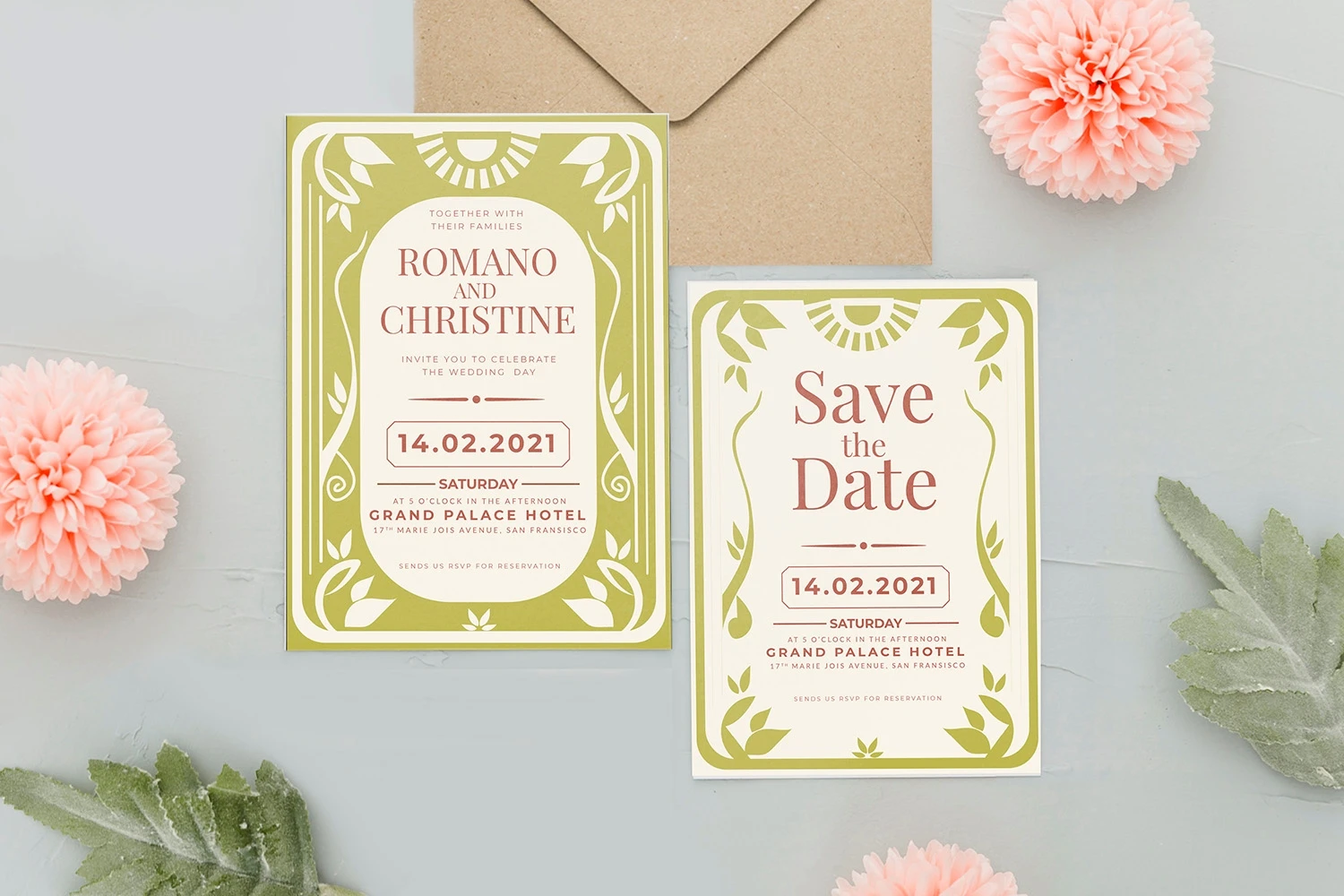 Green Old Art Nouveau - Wedding Invitation, is an invitation card leaflet, poster design, etc. Simple and very elegant You can easily edit & adjust each design because each layer such as text, images and shapes are well organized and highlighted.