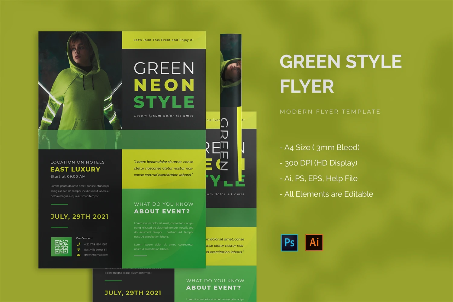 Green Style - Flyer. This Flyer template is designed for your company's business needs. very clean and elegant, and also easily edited and adjusted to your liking