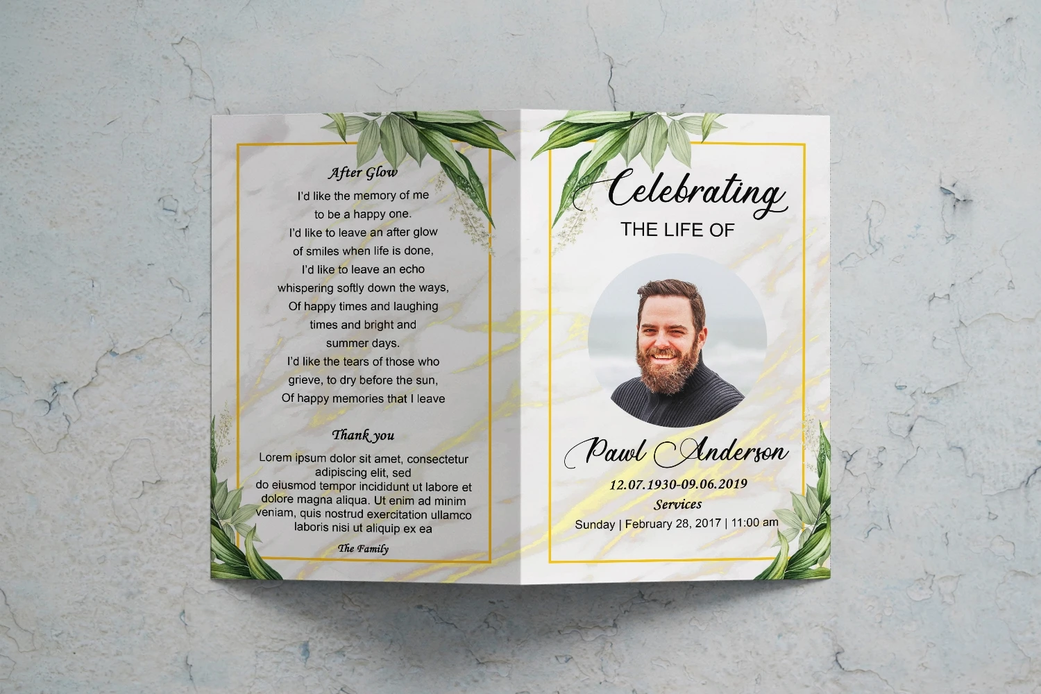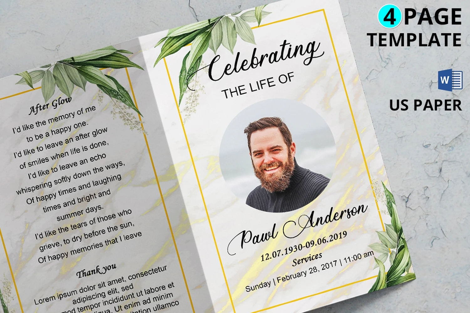 8.5x11 Inches Word, Publisher and CANVA Funeral Program Template.