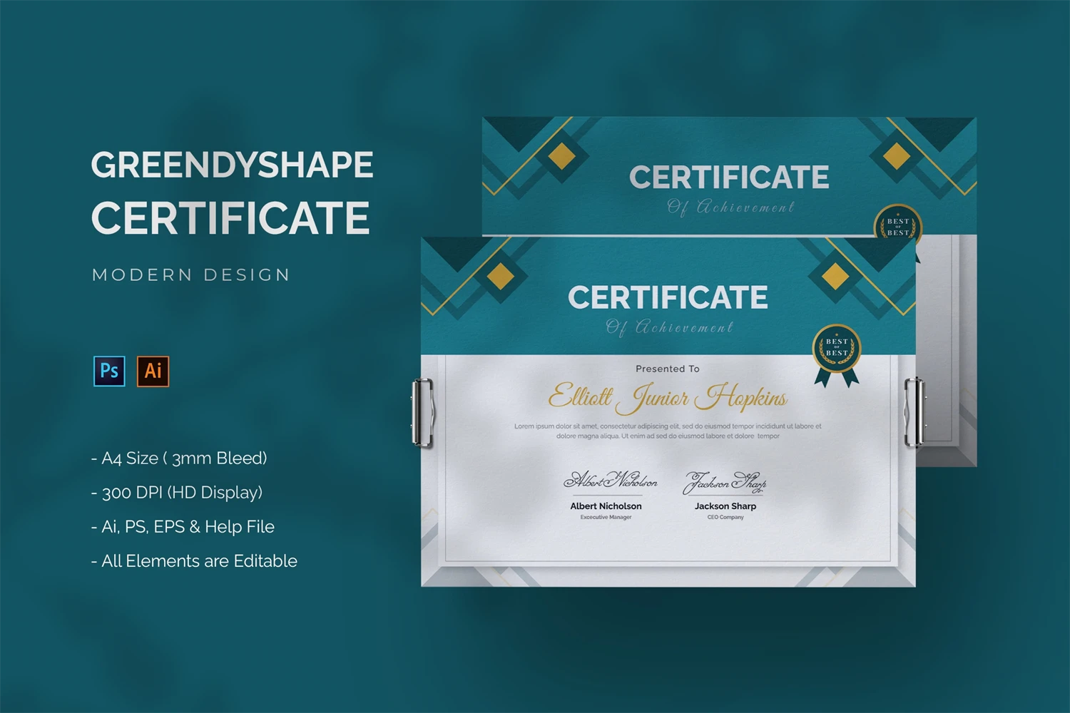 This is Greendyshape - Certificate Get it now!, This very professional, easy to edit, can be customized to your needs,(Adobe Illustrator,Adobe Photoshop). You can use this certificate for awards, seminars, training, tournaments, I hope you enjoy for this, Hope you Like it dont forget to rate, Thanks.