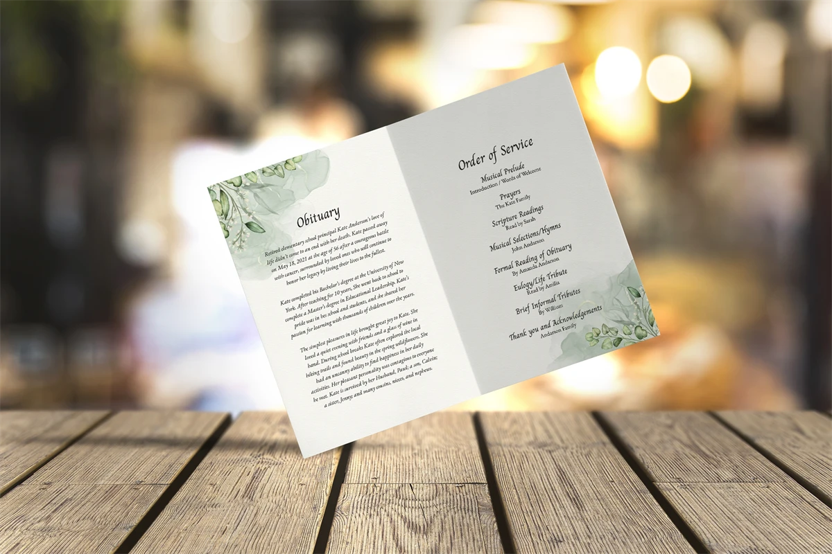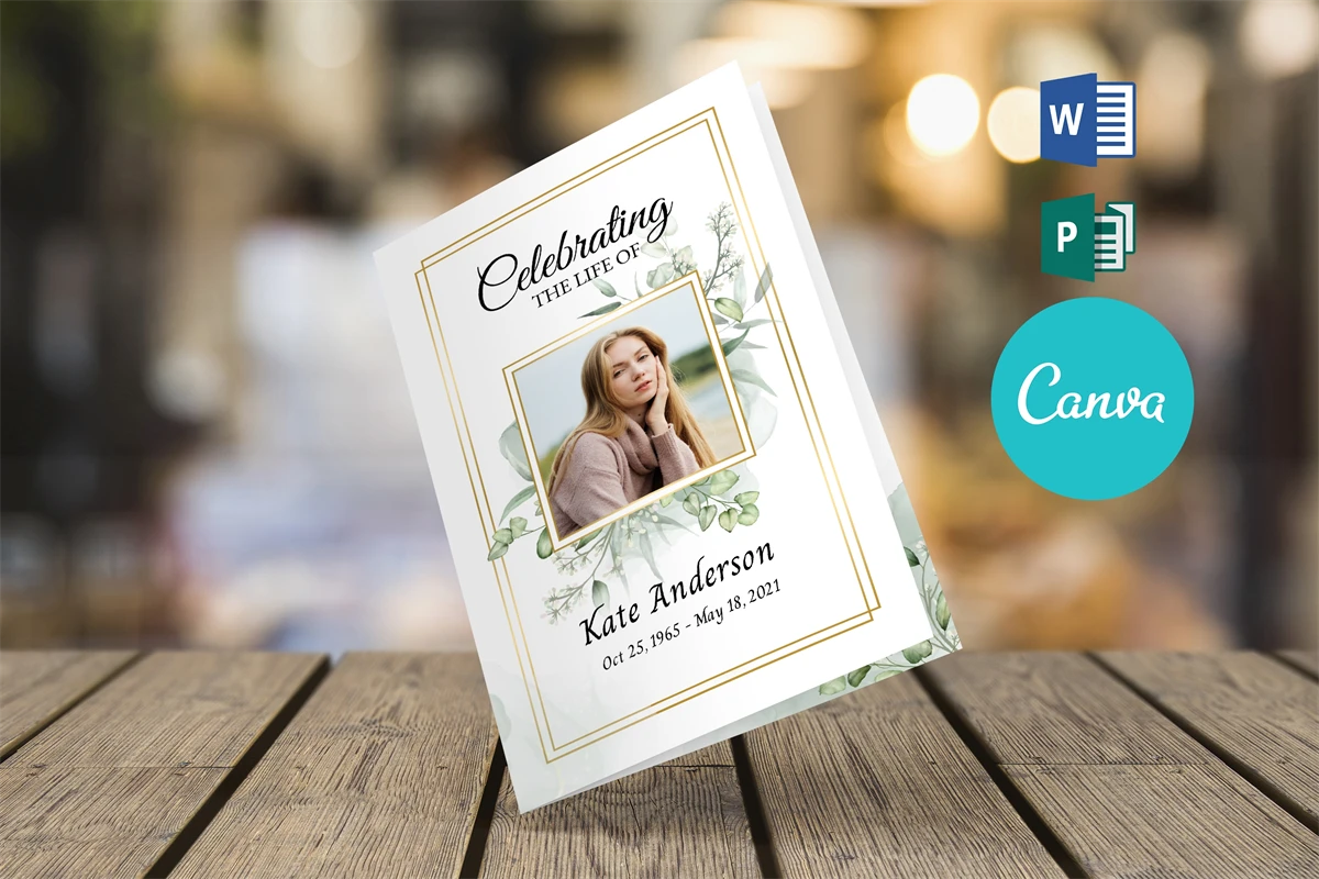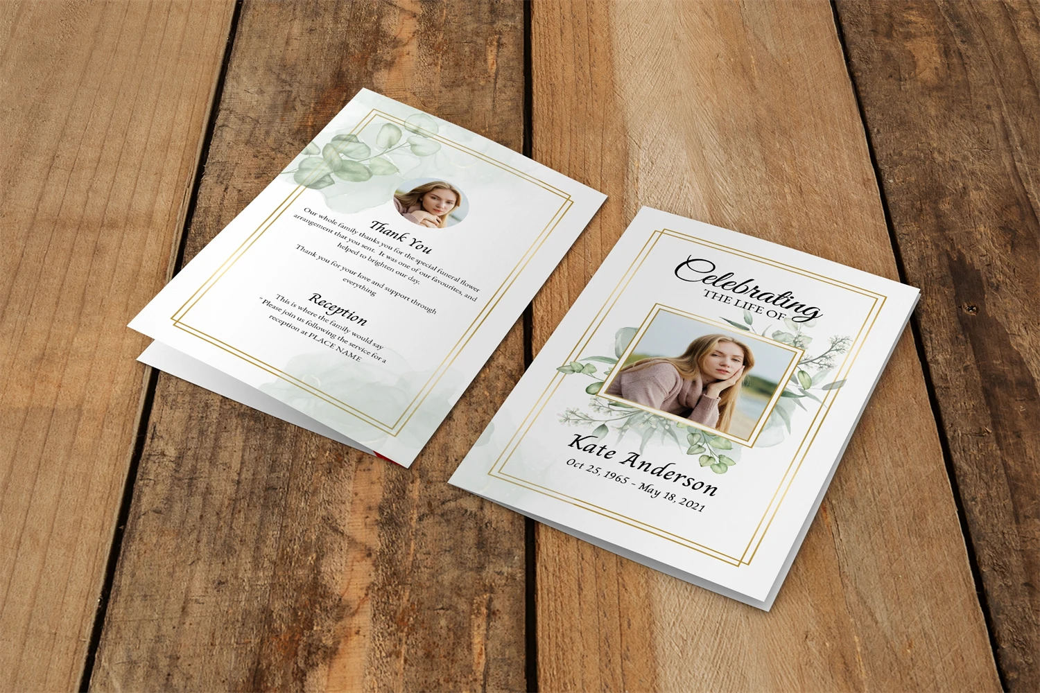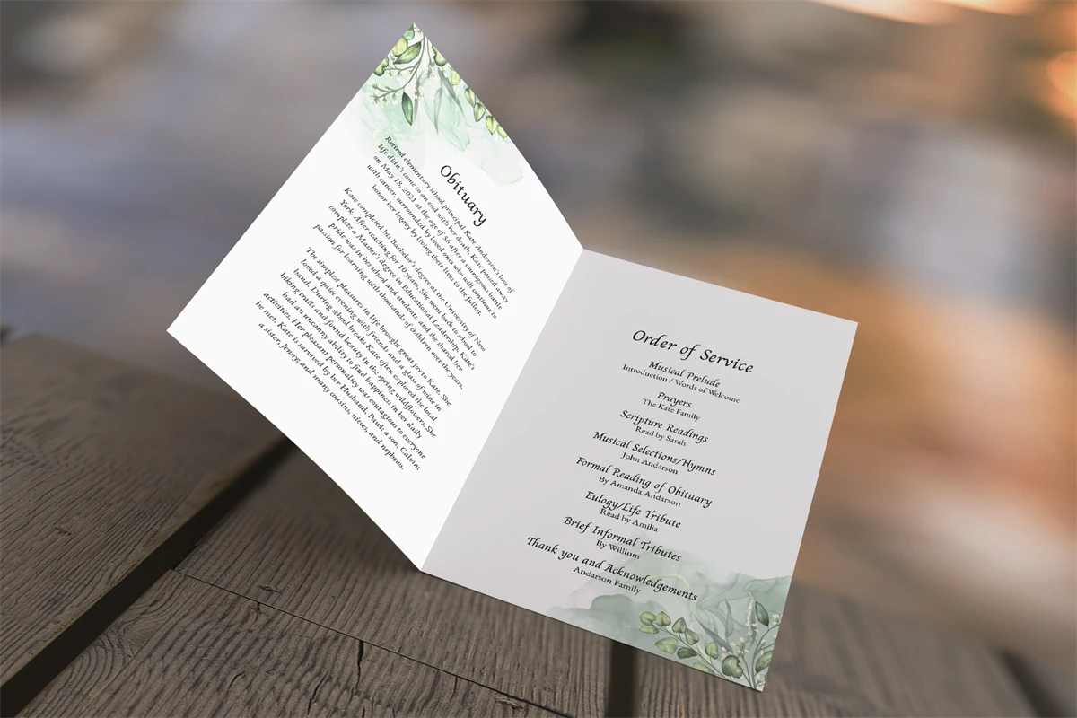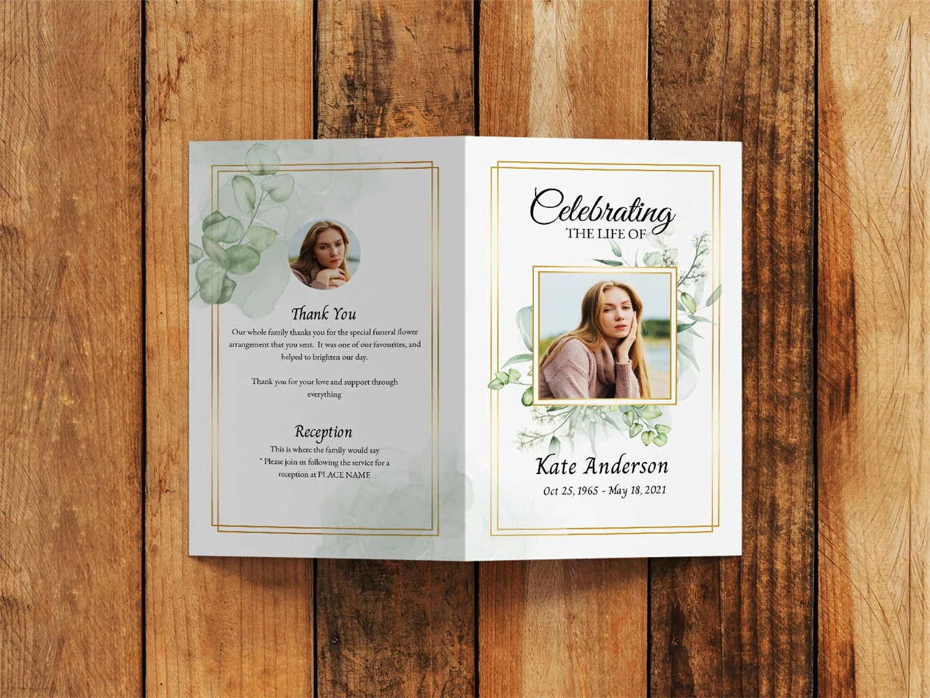 Funeral program template 4 page for women with Greenery Decoration. This template is a great way to honor your loved one.