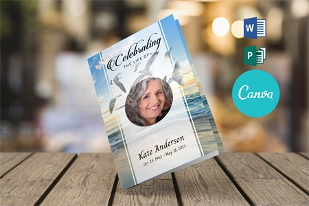 8.5x11 Inches Word, Publisher and CANVA Funeral Program Template.