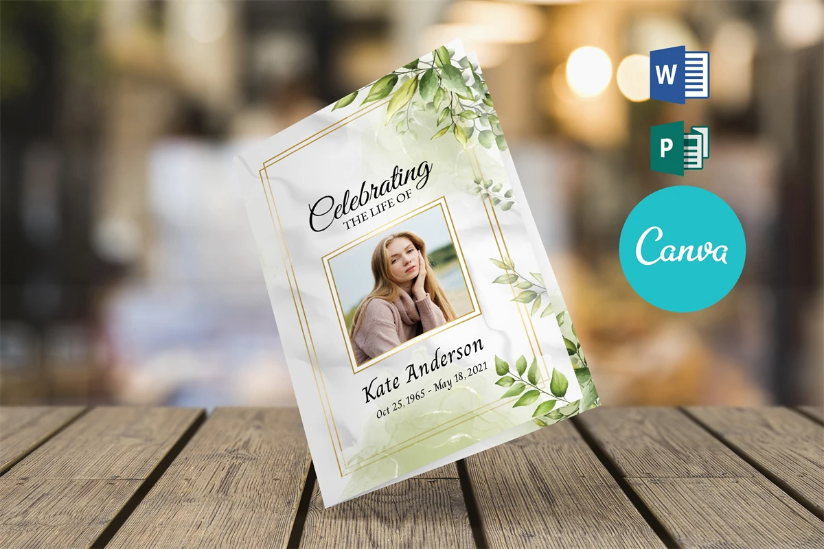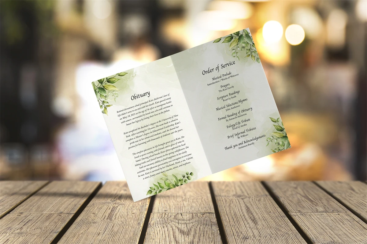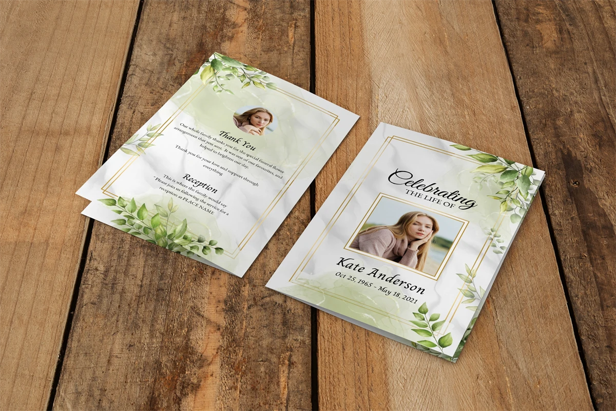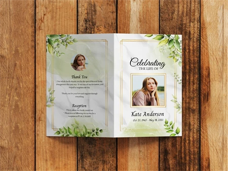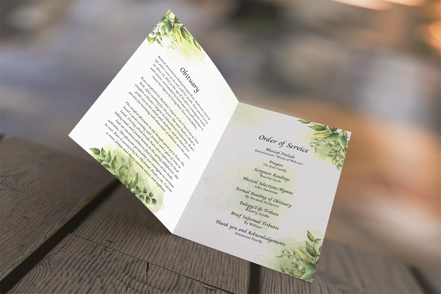 Funeral program template 4 page for women with Greenery Decoration. This template is a great way to honor your loved one.