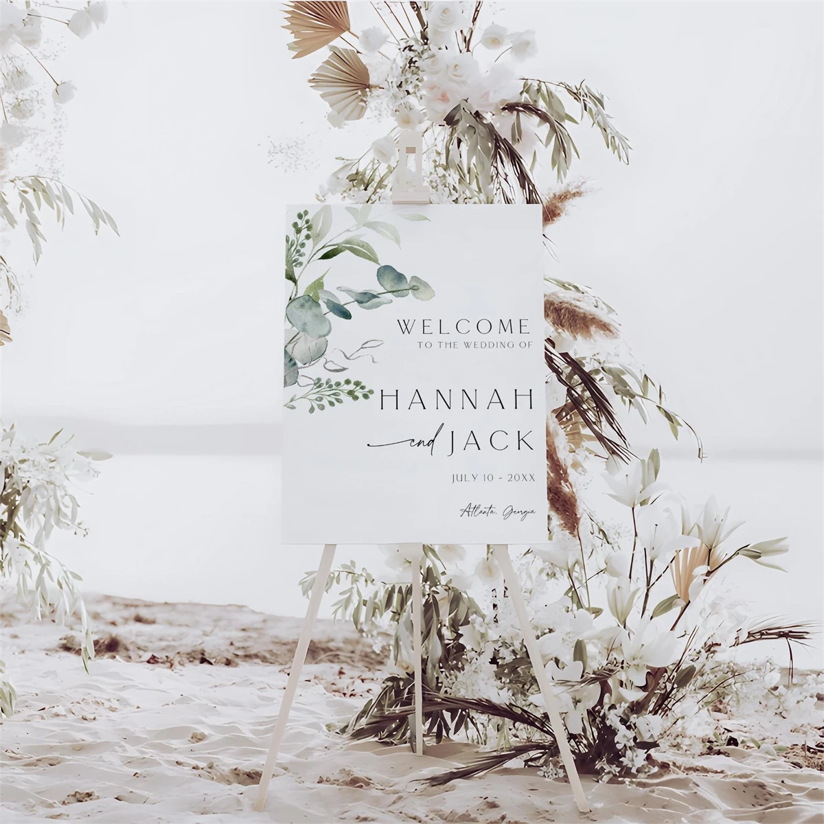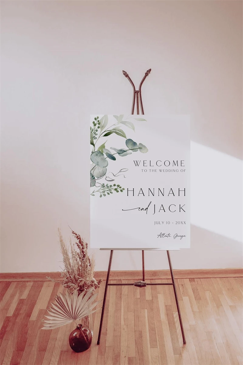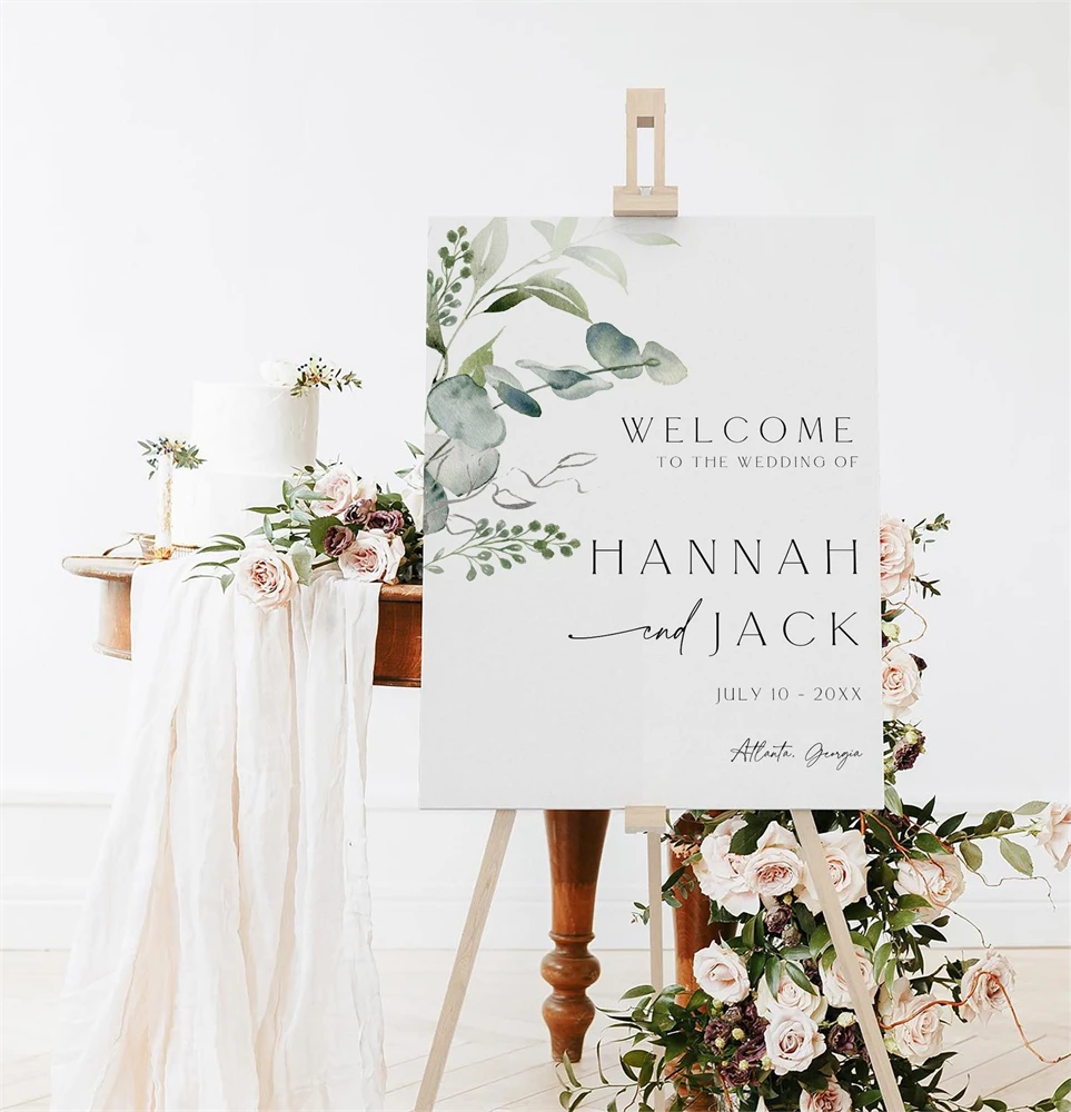 Greenery Wedding Welcome Sign Template, Leaves Wedding,Canva