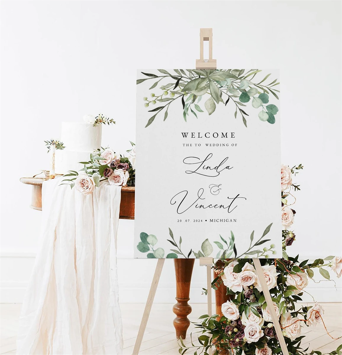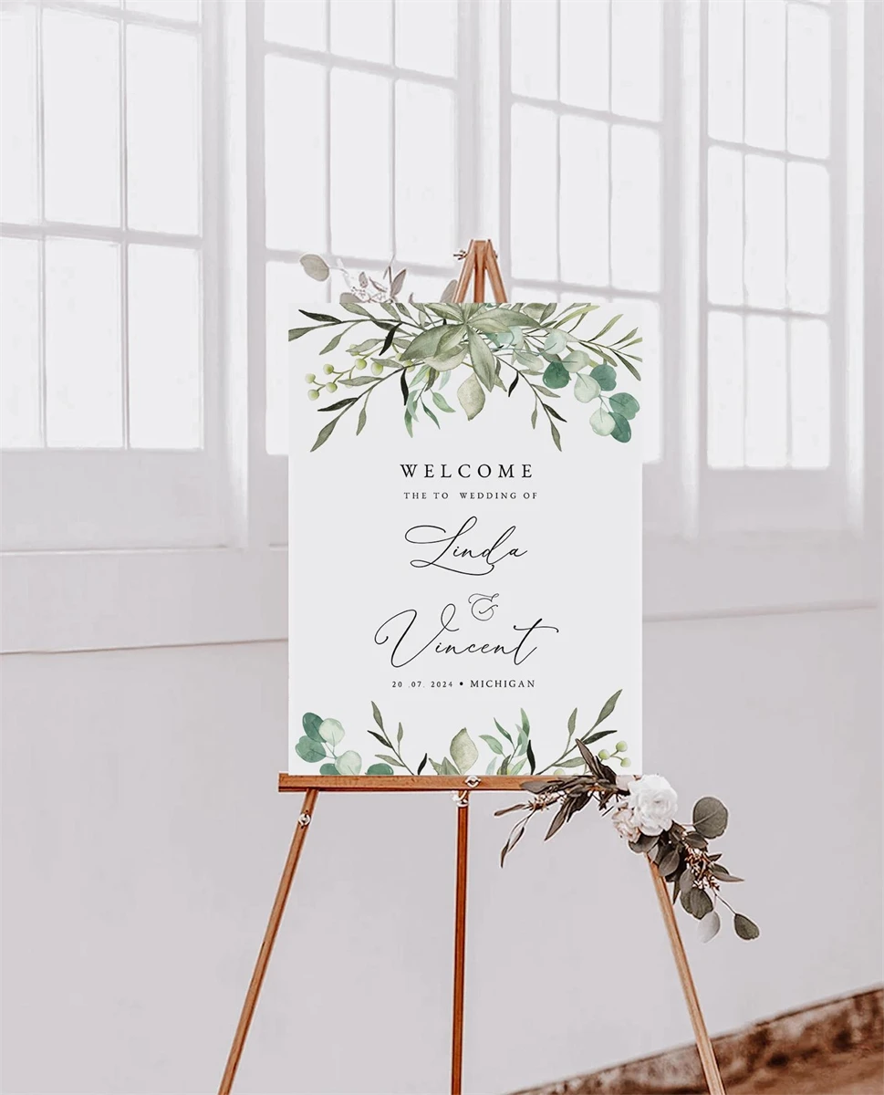 Greenery Wedding welcome sign template,Welcome wedding,Canva