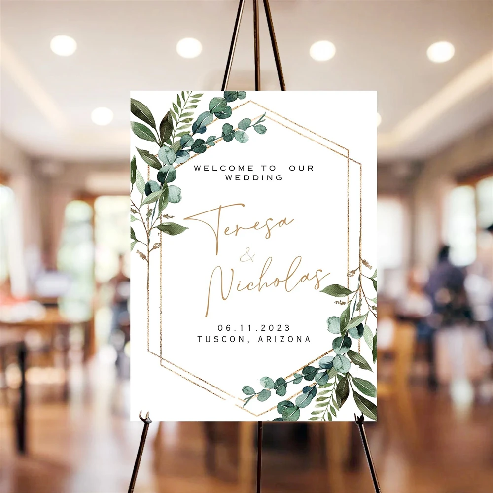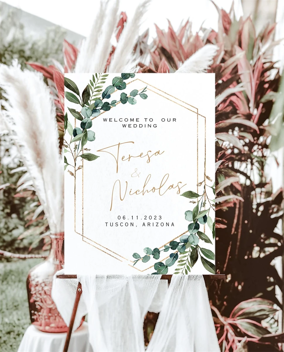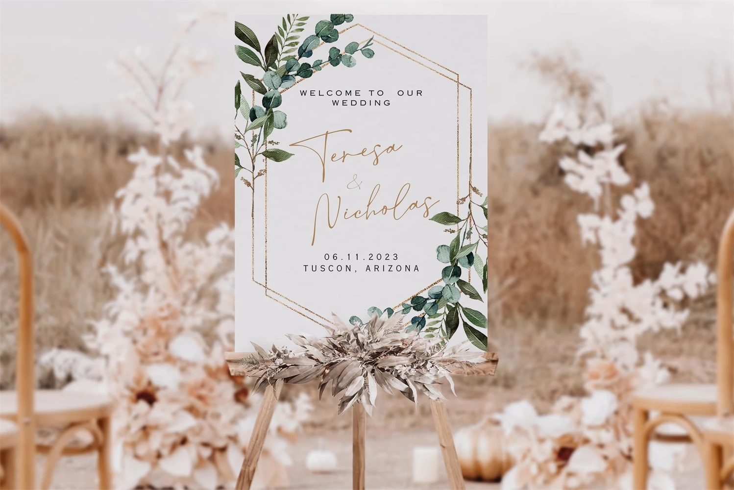 Greenery Wedding Welcome Sign, Templett Welcome Poster,Canva