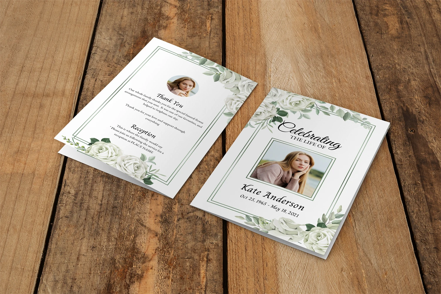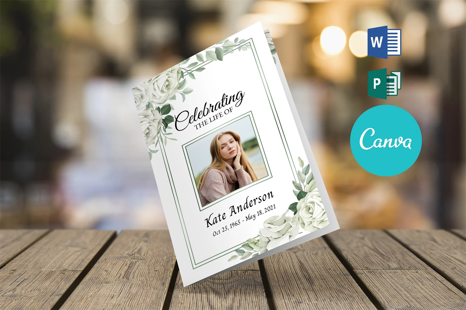 8.5x11 Inches Microsoft Word, Publisher and CANVA Funeral Program Template.