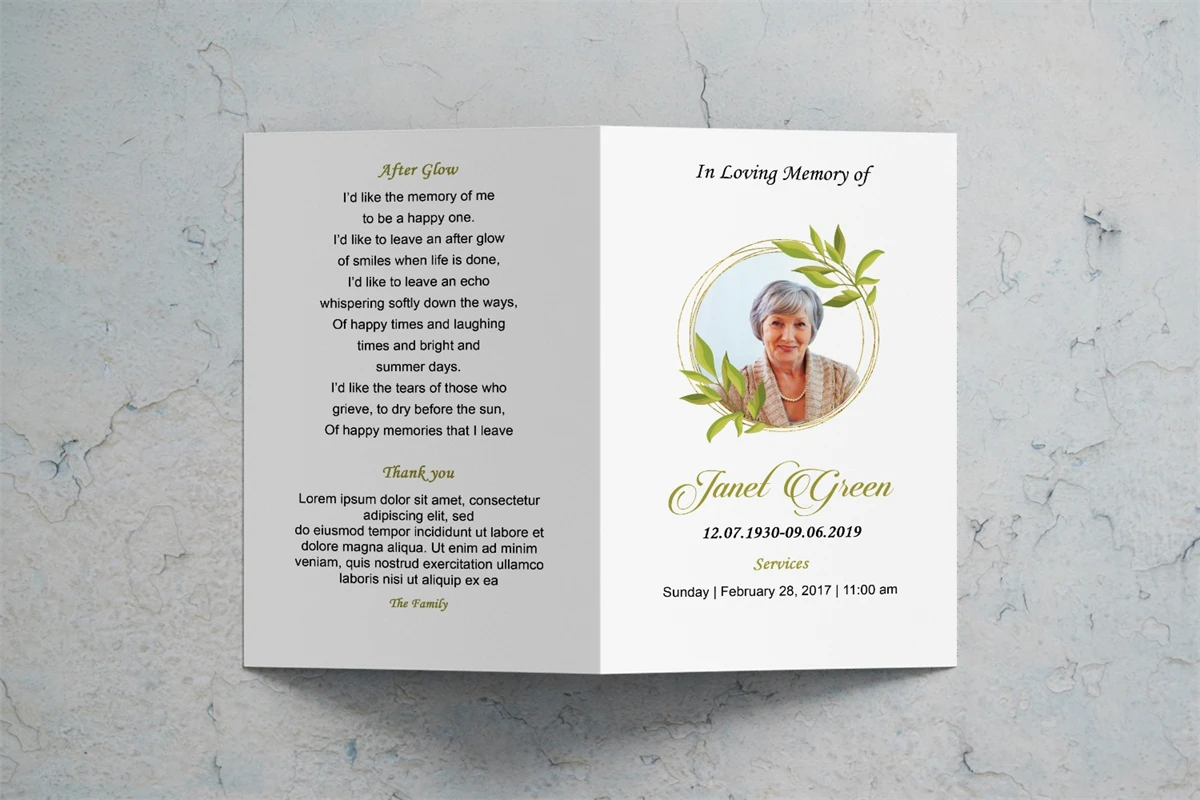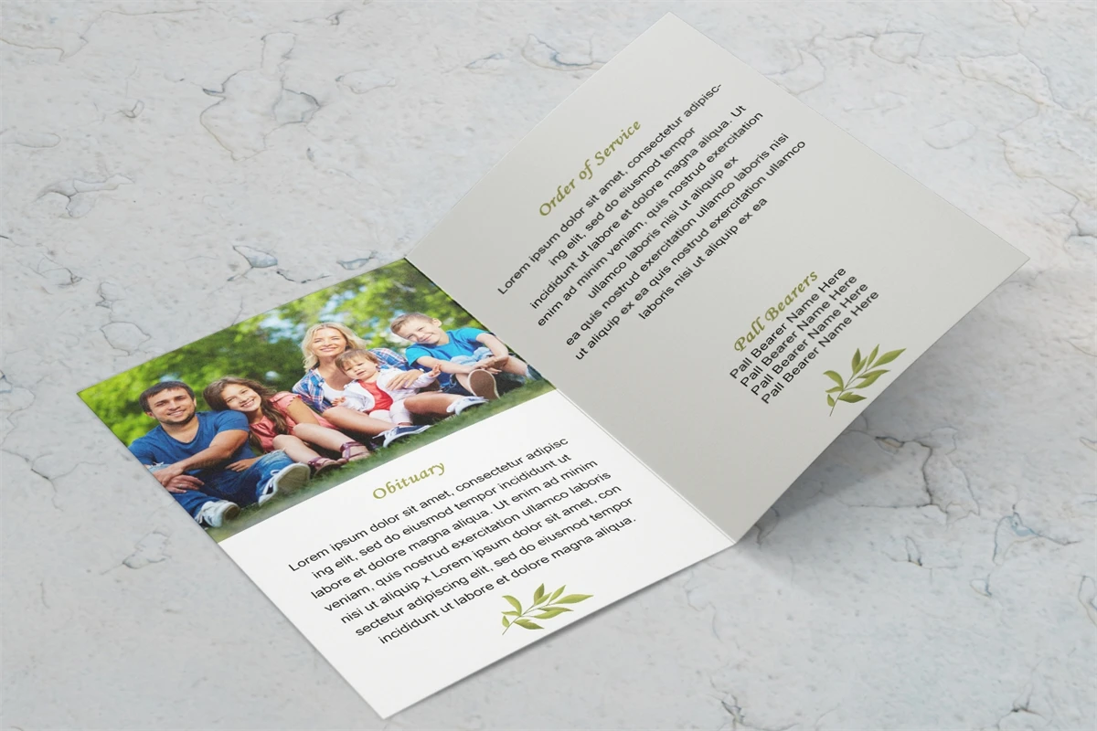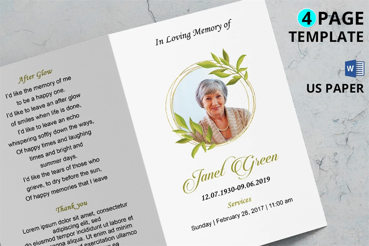8.5x11 Inches Word, Publisher and CANVA Funeral Program Template.