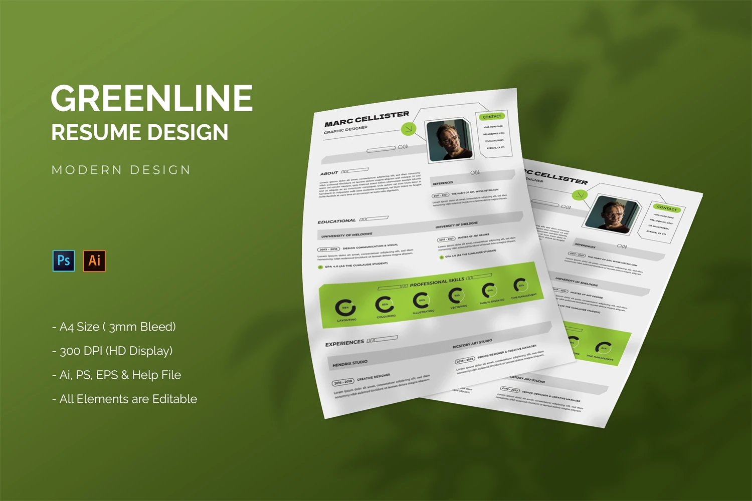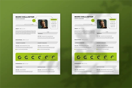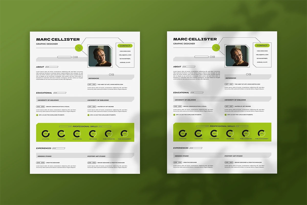 This CV resume design template lets you tell your story to potential employers or collaborators by showcasing your skills, experience, and accomplishments. It presents your credentials clearly and professionally to draw attention and highlight your strengths.
