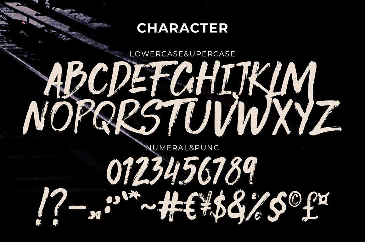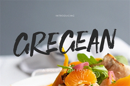 Gregean Brush is a relaxed brush font with a fine grit texture. This font has an irregular treatment between characters to give it a more realistic look. Use lowercase and uppercase for alternate characters to suit. Suitable for use on title designs such as book titles, stationery designs, quotes, branding, logos, clothing, invitations, greeting cards, t-shirts, packaging designs, posters, and others.