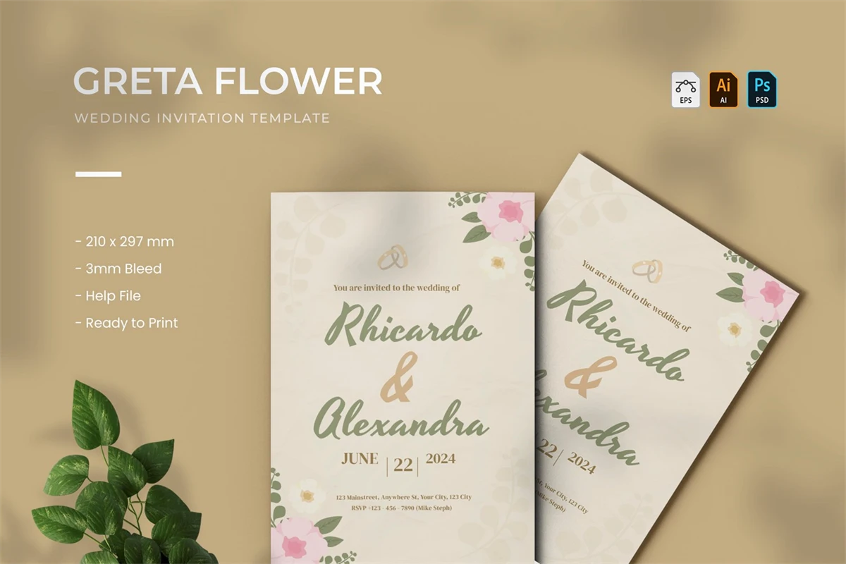 For the couple that wants to express their individuality, this wedding invitation is the right choice. In addition to the print size, we will also offer you with the digital size for Instagram Post and Instagram Story. Facebook and other social media sites also benefit from this. The accompanying AI file is fully vector, so you may scale it to any size without compromising the design.