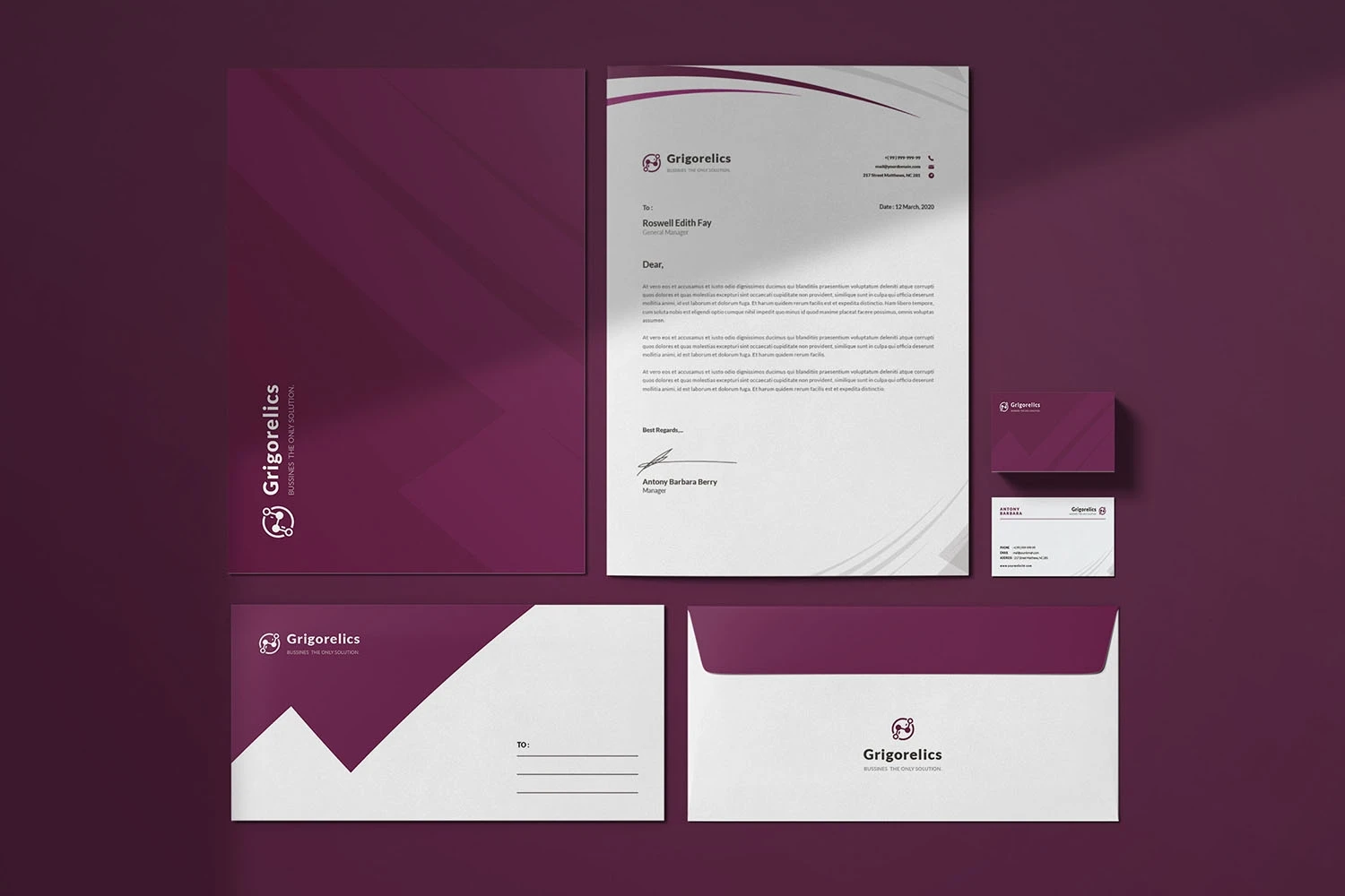 Grigorelics Company - Stationary. This template is great for your business and this design will make your interested, elegant, and easily editable according to your needs. I hope you enjoy for this stationary.