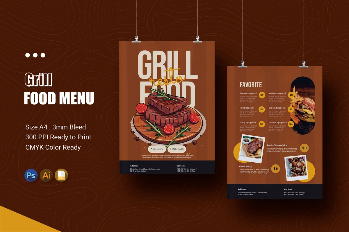 This Menu is great for displaying your restaurant menu in an eye pleasing way. Attracting customers with an easy-to-read restaurant menu certainly makes closing easier, right? easily editable according to your needs, this restaurant menu is perfect for promos, cafes, hotels, resort shops online etc.