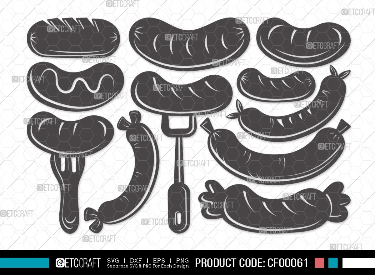 Discover the irresistible allure of BBQ with our "Grilled Sausage Silhouette BBQ Bratwurst" SVG cut file bundle. These captivating silhouettes bring the essence of a barbecue feast to your crafting projects.