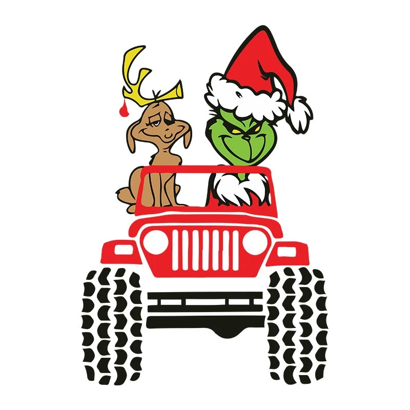 Grinch And Dog Max Driving Jeep Christmas Svg