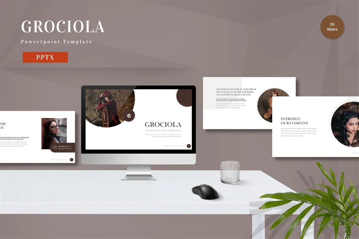 Get it now! **Grociola - Powerpoint Template** for All Business and Personal Needs All elements on this template are editable; input your content, replace your image with a placeholder, change the color, and all presentations include an animated slide to present your slides.