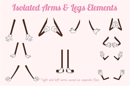 34 isolated elements (16 flowers + 18 legs and arms(right and left arms saved as separate files))/