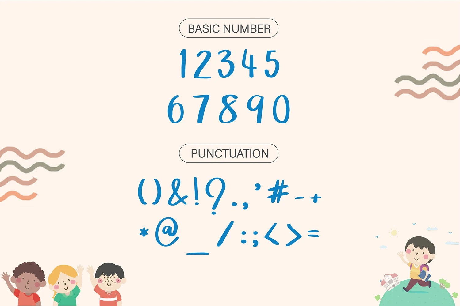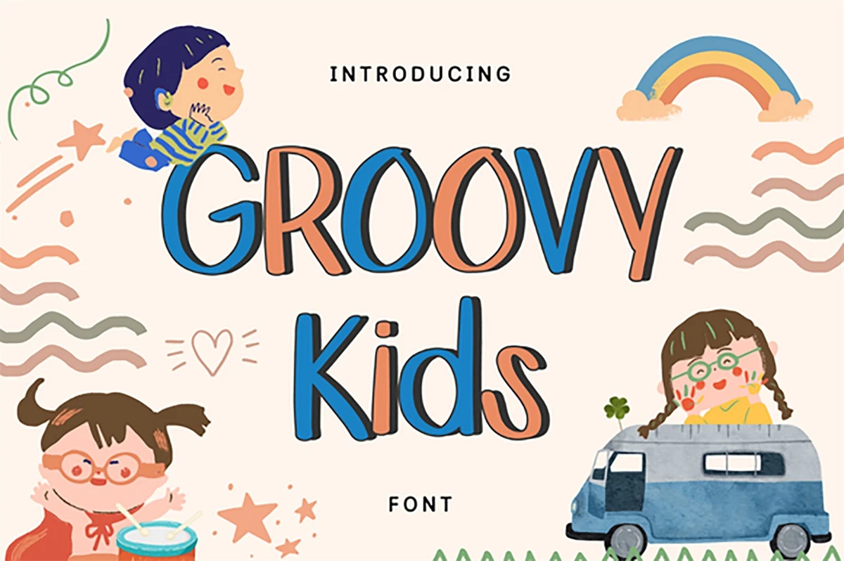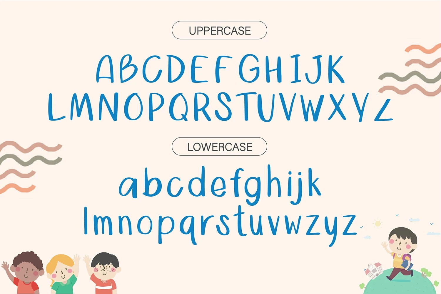 Groovy Kids is a cute and playful handwritten font perfect for use on cheerful topics. Very suitable for childrens themed designs, especially when combined with bright colors.