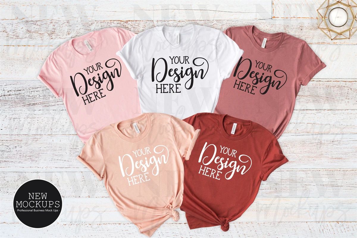 Bella Canvas 3001 Pink, White, Mauve, Heather Peach, Rust T-Shirt Mockup!