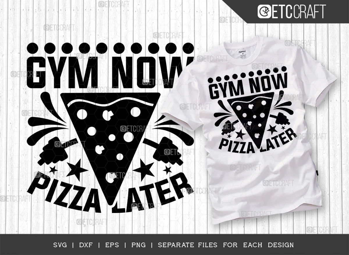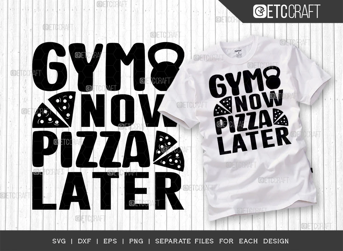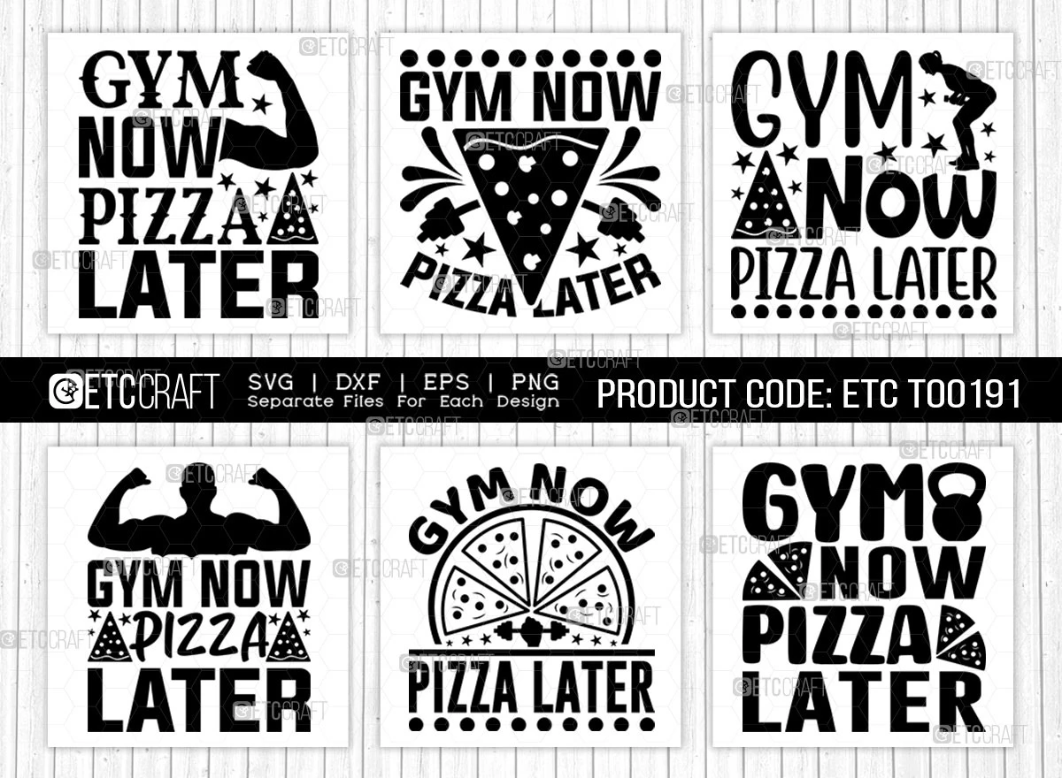 Incorporate these catchy and motivating Gym Now Pizza Later SVG designs into your fitness-themed projects and let your passion for health and well-being shine. Stay motivated, look stylish, and express your love for fitness with this versatile bundle!