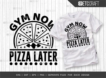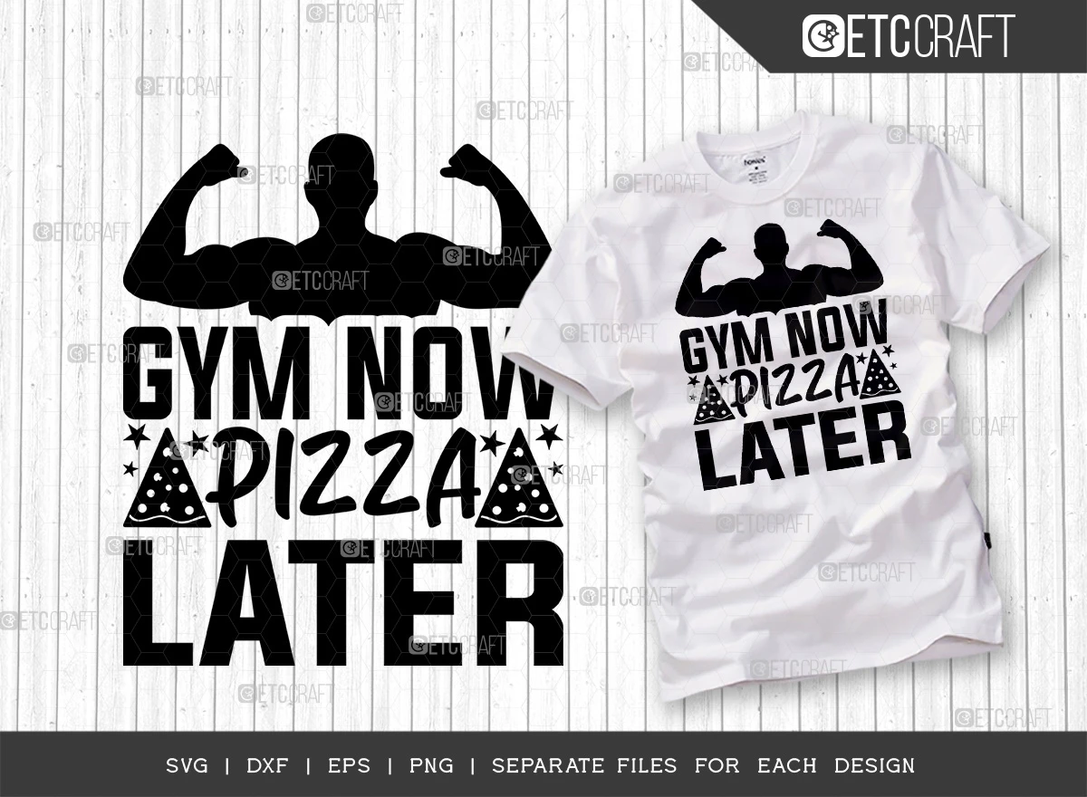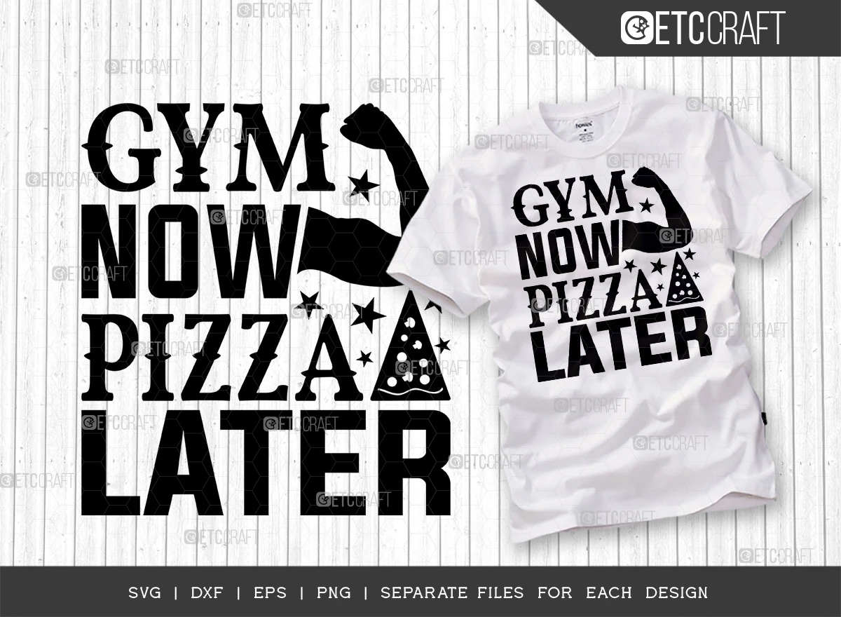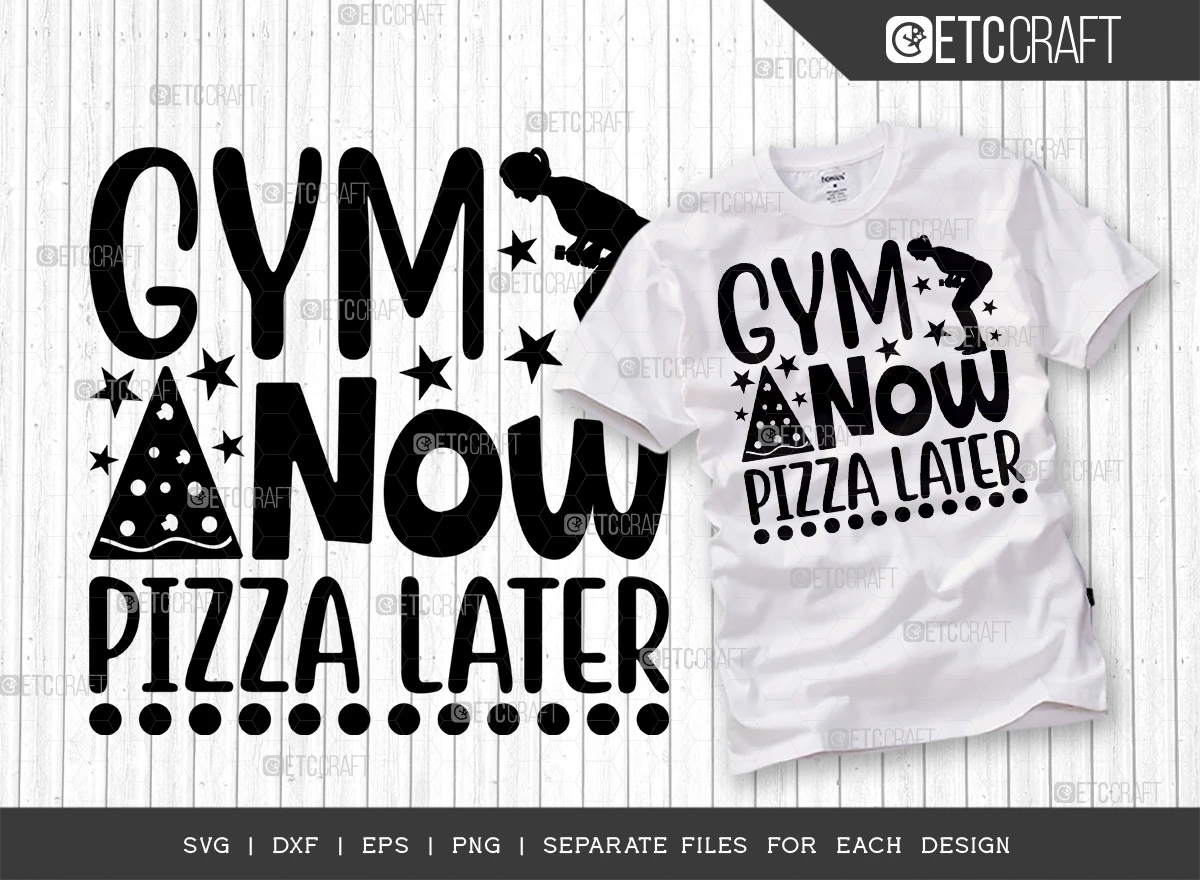 Incorporate these catchy and motivating Gym Now Pizza Later SVG designs into your fitness-themed projects and let your passion for health and well-being shine. Stay motivated, look stylish, and express your love for fitness with this versatile bundle!