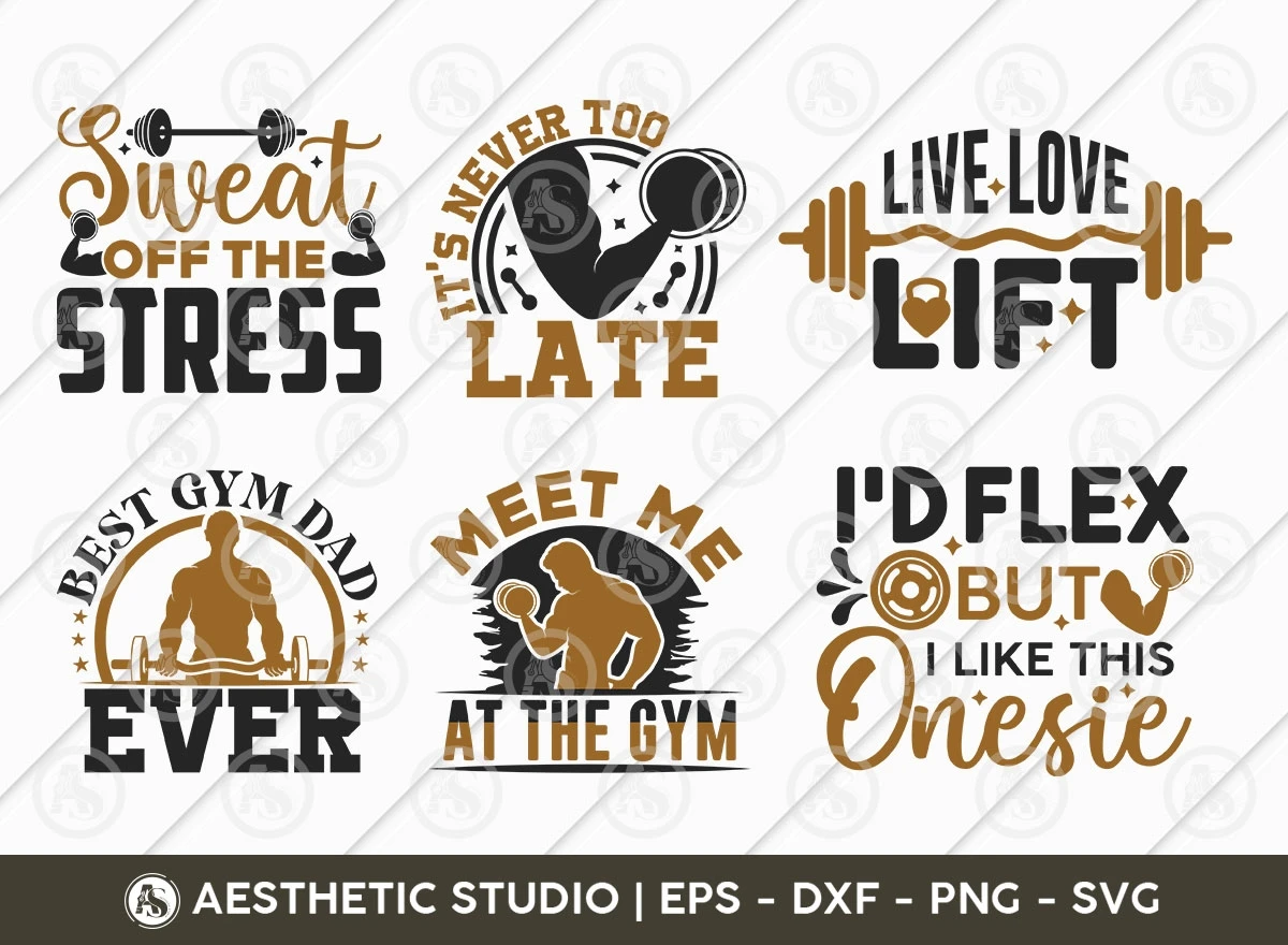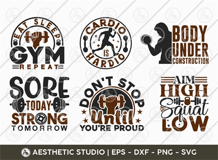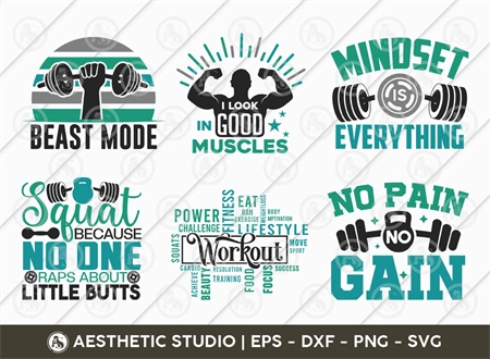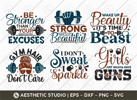 Diverse Designs: The "Gym Bundle" includes an array of fitness-themed designs, from motivational quotes to workout-inspired graphics. With this collection, you have the flexibility to choose the perfect design for your gym apparel or accessories.