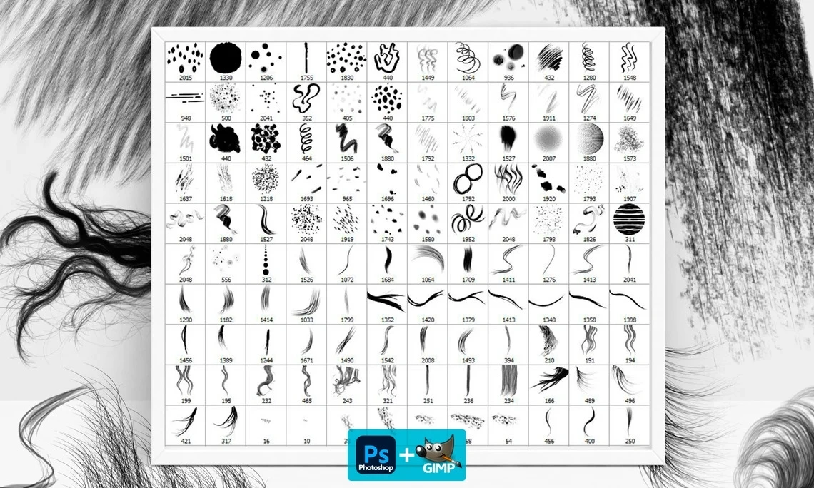 I have prepared very high quality Photoshop brushes for you, and these brushes work in the graphics program GIMP.