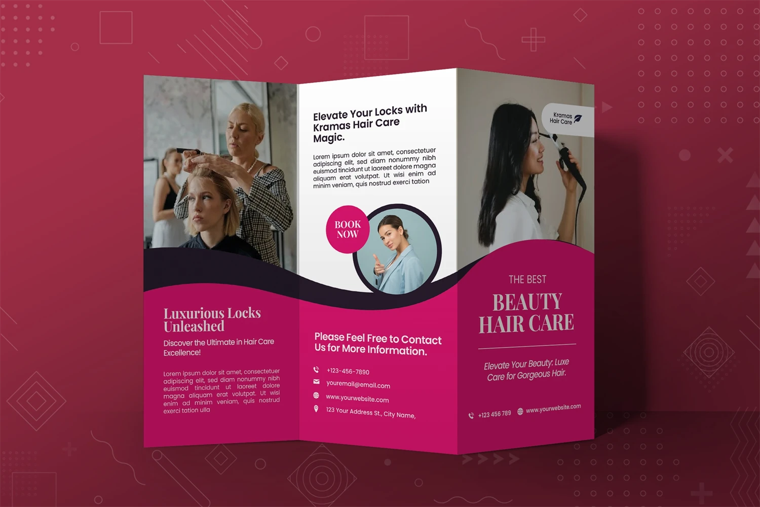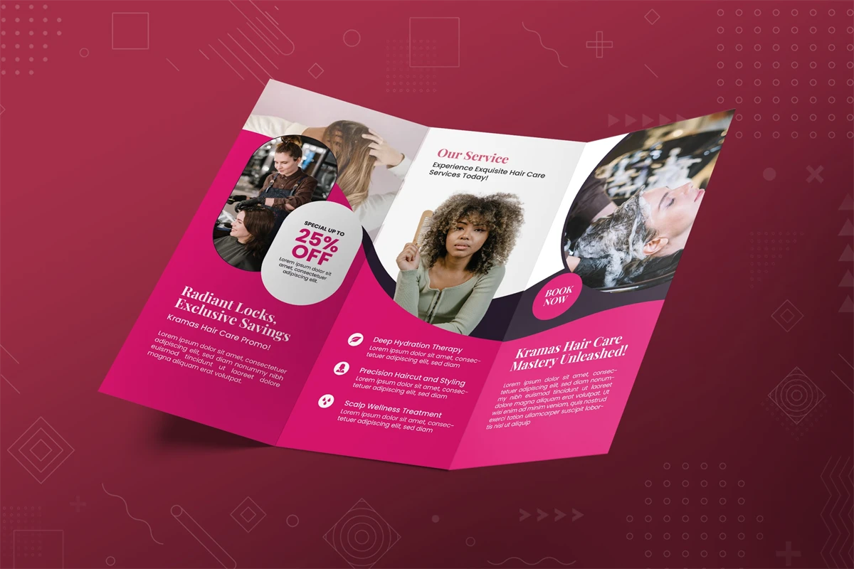 Discover our trifold brochure design template for creative communication. Each fold reveals information, visuals, and captivating content, making it a versatile platform to convey your impactful message.