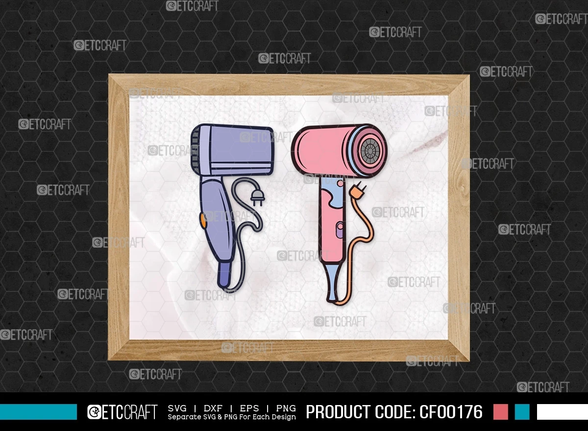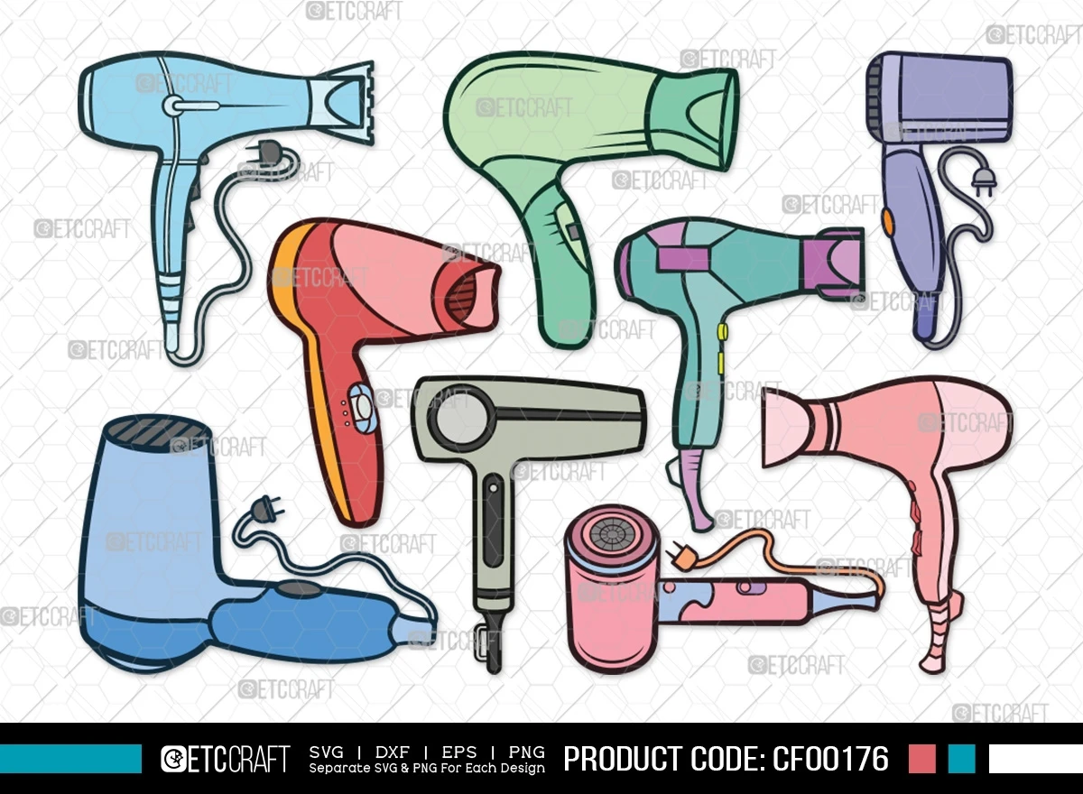 Enhance your hairstyling projects with the Hair Dryer Clipart Blow Dryer Stylist Barber Tools SVG Cut File Bundle. Download now to unlock a world of creative possibilities and effortlessly infuse style into your hairstyling-themed designs and crafts!