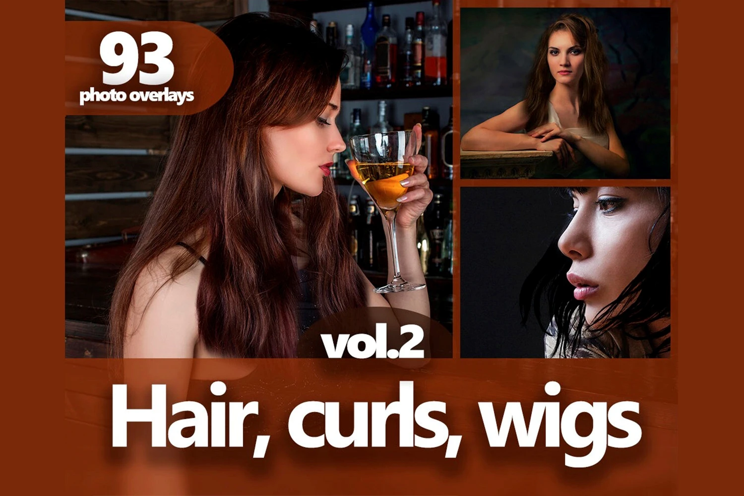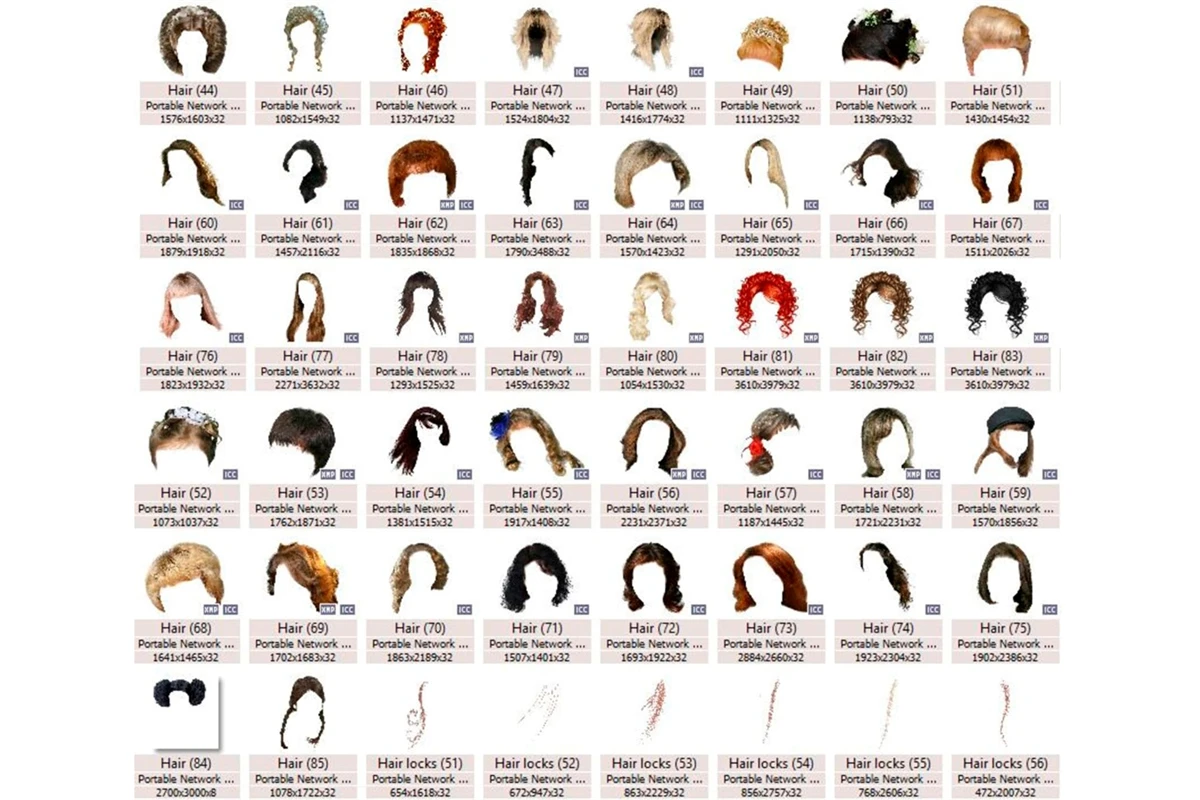 Hair overlays, Curls overlays, Wigs PNG, Digital hair, Painted hair, PNG set, Wigs Photoshop PNG, Painted hair Overlay, Scrapbooking hair