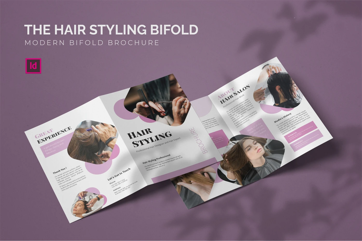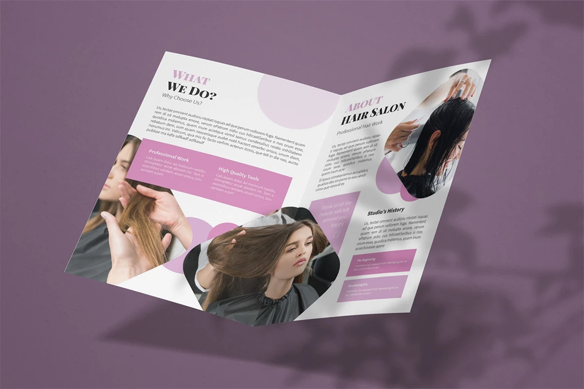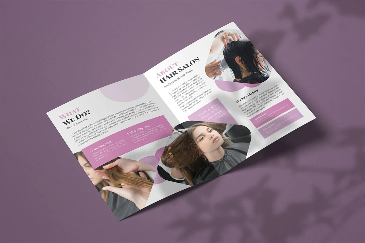 Hair Styling - Bifold Brochure We present this Bifold Brochure for you, simple and very elegant, and this Bifold Brochure is suitable for all types of your business, made with adobe inDesign, very easy to customize, Hope you Like it, dont forget to rate, Thanks.